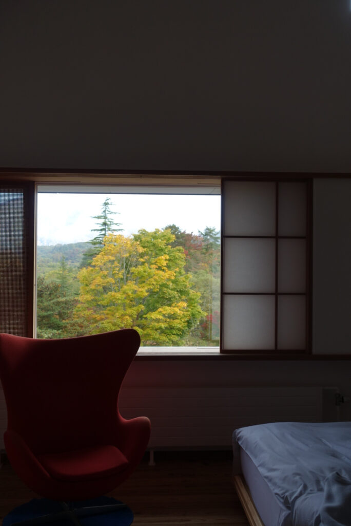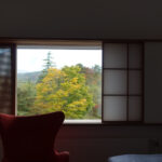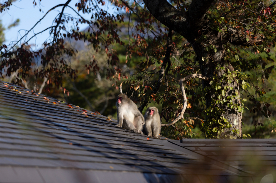 目覚めてすぐに視界に入る大きな窓の外には赤や黄色に色づいた木々が広がり、屋根の上にはかわいい猿たちの姿も。自然とともに生きる時間を体感できる、ここだけの特別なヒーリングタイムを心ゆくままに過ごします。猿の親子を眺めながら浸かる源泉かけ流しの朝風呂は、心も体もほどける至福のひとときでした。