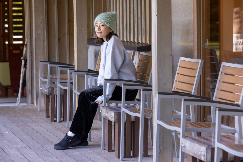 東京〜現地までの移動では「ReEmber Camp」を着用。ふかふかのキルティングアッパーが足元を包み込み温かく保ってくれるので、冷えやすい新幹線でも安心。東京よりも気温がグッと下がる福島の夜の気候にもしっかり対応してくれました。