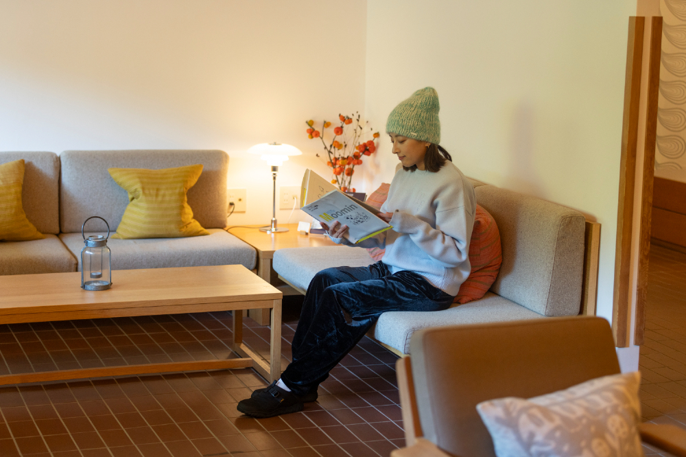 国立公園内の森の中にひっそりと佇むのが『HOTELI aalto(ホテリ・アアルト)』。北欧文化を取り入れた木の温もりを感じるインテリアと、源泉かけ流しの温泉、高原ならではのグルメが魅力のホテルです。一歩外に出れば、庭のすぐ先に大自然が広がり、散歩道を歩けば木々の香りと澄んだ空気に包まれます。