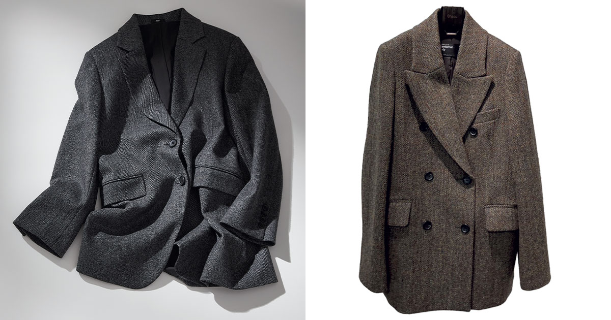 CLASSY.Couples寺松明日香さんは「カリテ」でオーダー済み。ジャコット各¥69,300(ともにカリテ/カリテ スケープ コレド日本橋店)