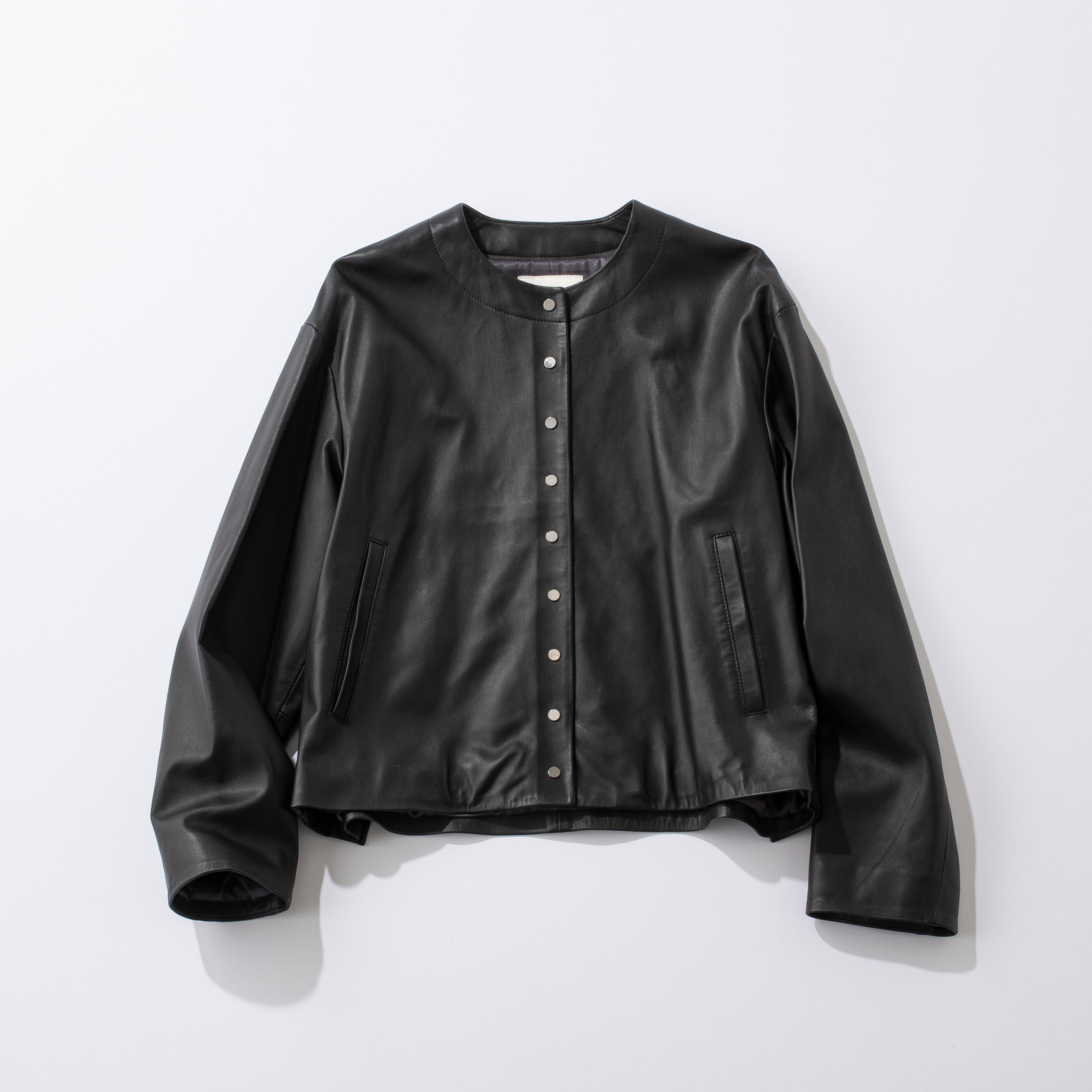 ソフトで滑らか、マットな光沢感が特徴的なシープレザーを使用したブルゾン。ミニマルなフォルムとクルーネックが女性らしい。デニムやTシャツと合わせても品があるのでカジュアルになりすぎないのが嬉しい。シープレザーブルゾン¥83,600(シップス/シップス インフォメーションセンター)