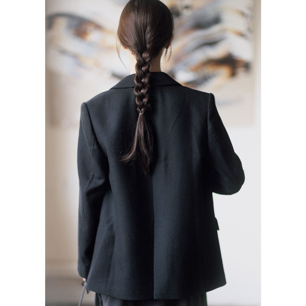 ジャコット※10月下旬発売¥44,000(アンクレイヴ╱オンワード樫山 お客様相談室)シャツ¥9,990(Gap)パンツ¥29,700(Uhr Online Store)バッグ¥107,100(カフネ╱カフネ カスタマーサポートセンター)ローファー¥35,200(銀座かねまつ6丁目本店)靴下¥1,210(靴下屋╱タビオ)ヘアリボン¥38,500(アレクサンドル ドゥ パリ╱アレクサンドル ドゥ パリ GINZA SIX店)
