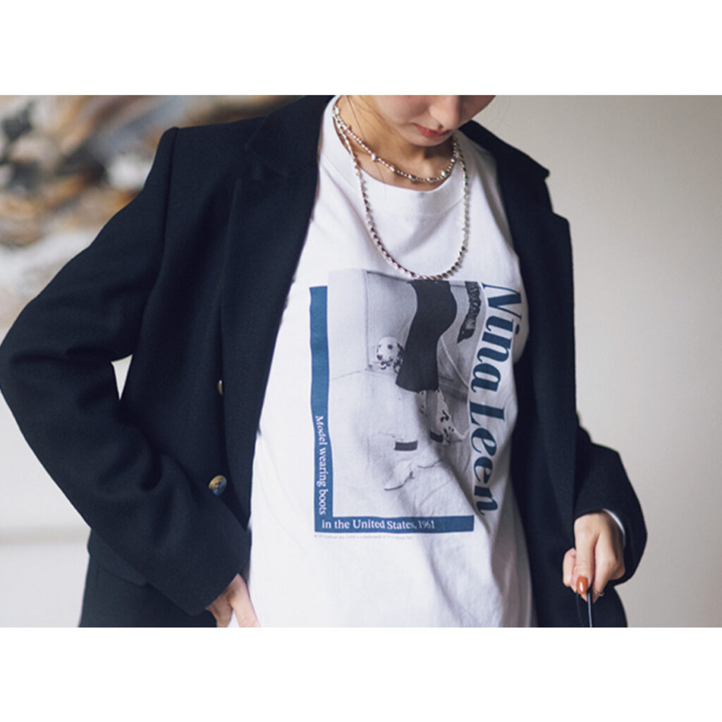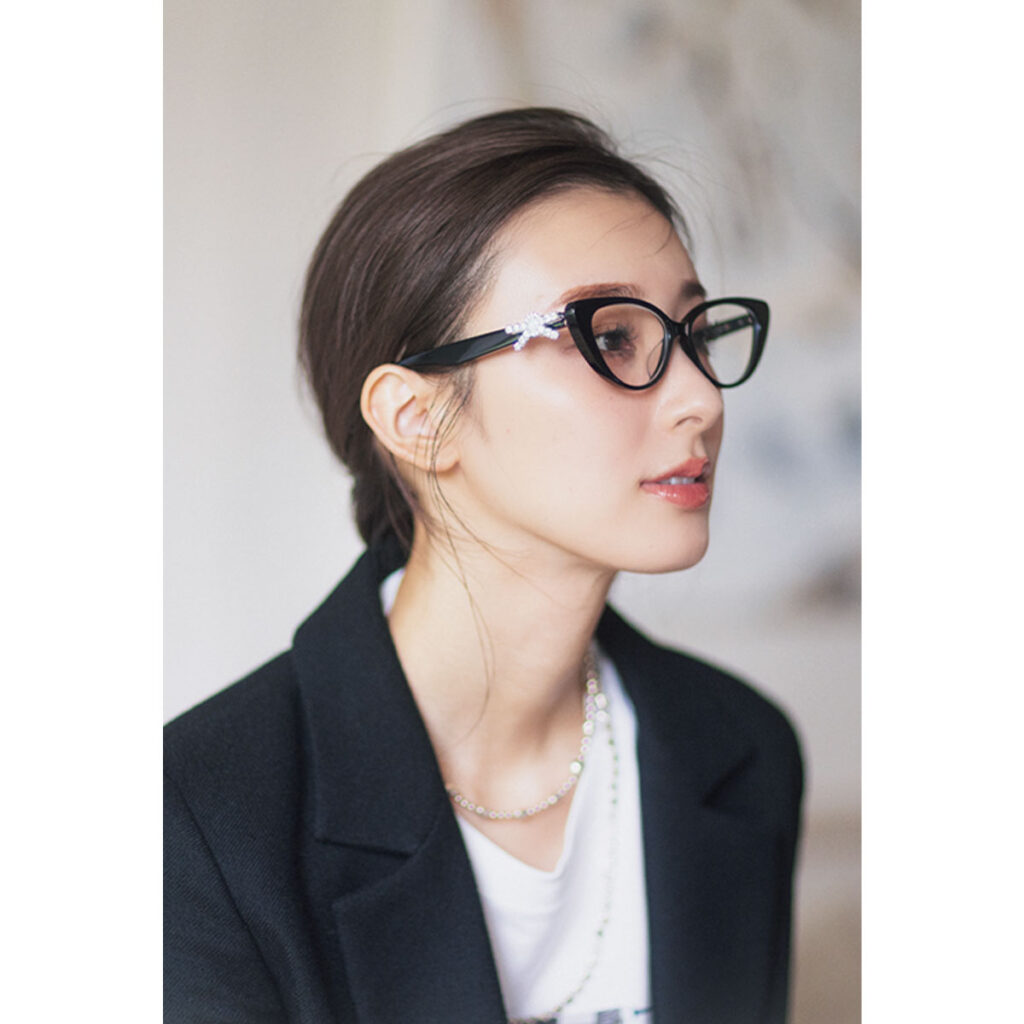 ジャコット¥44,000(カデュネ プレスルーム)Tシャツ¥7,480(GOOD ROCK SPEED╱グッドスピード)メガネ¥44,000(YVMIN╱NUBIAN)ネックレス※短¥24,200※長¥35,200(ともにquip queint╱フーブス)リング※10点セット¥15,120(アビステ)