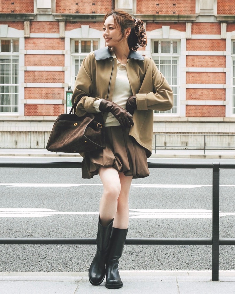 11月16日(日)、秋の「大人ミニ」にチャレンジしたい。バルーンシルエットのミニスカートを主役に、ハンティングジャケットやレザー小物で引き締めれば、甘さと辛さのバランスが整います。素材とカラーでメリハリをつければ、可愛いのに媚びない印象へ。秋らしいカーキ×ブラウンのグラデ配色も、上品で洗練された雰囲気をつくってくれます。レオパード柄のスカーフをヘアアクセとして加えると、遊び心のあるアクセントに。