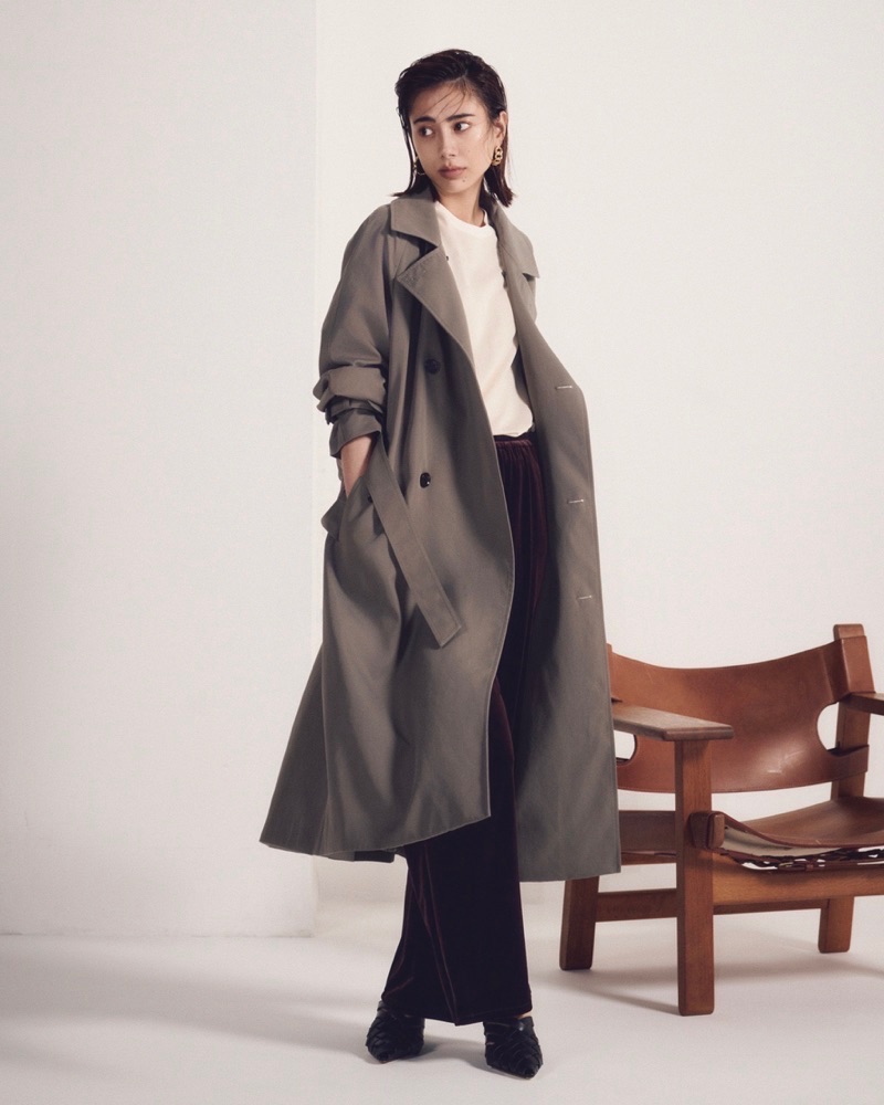 11月17日(月)、本格的な寒さにはまだ早いけど、アウターが恋しくなるこの時期。そんなときは、軽やかなのに防寒も叶うトレンチコートが頼りになります。ロングでワイドなシルエットを選べば、厚手のニットも中に重ねやすく、今っぽいバランスに。袖をロールアップすれば、こなれた抜け感に。ボトムは深みのある色合いのベロアパンツで、さりげなく季節感と艶を足して。タイトめなまとめ髪で全体をすっきり仕上げれば、トレンチが主役の大人スタイルが完成です。