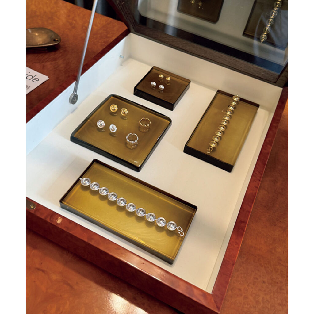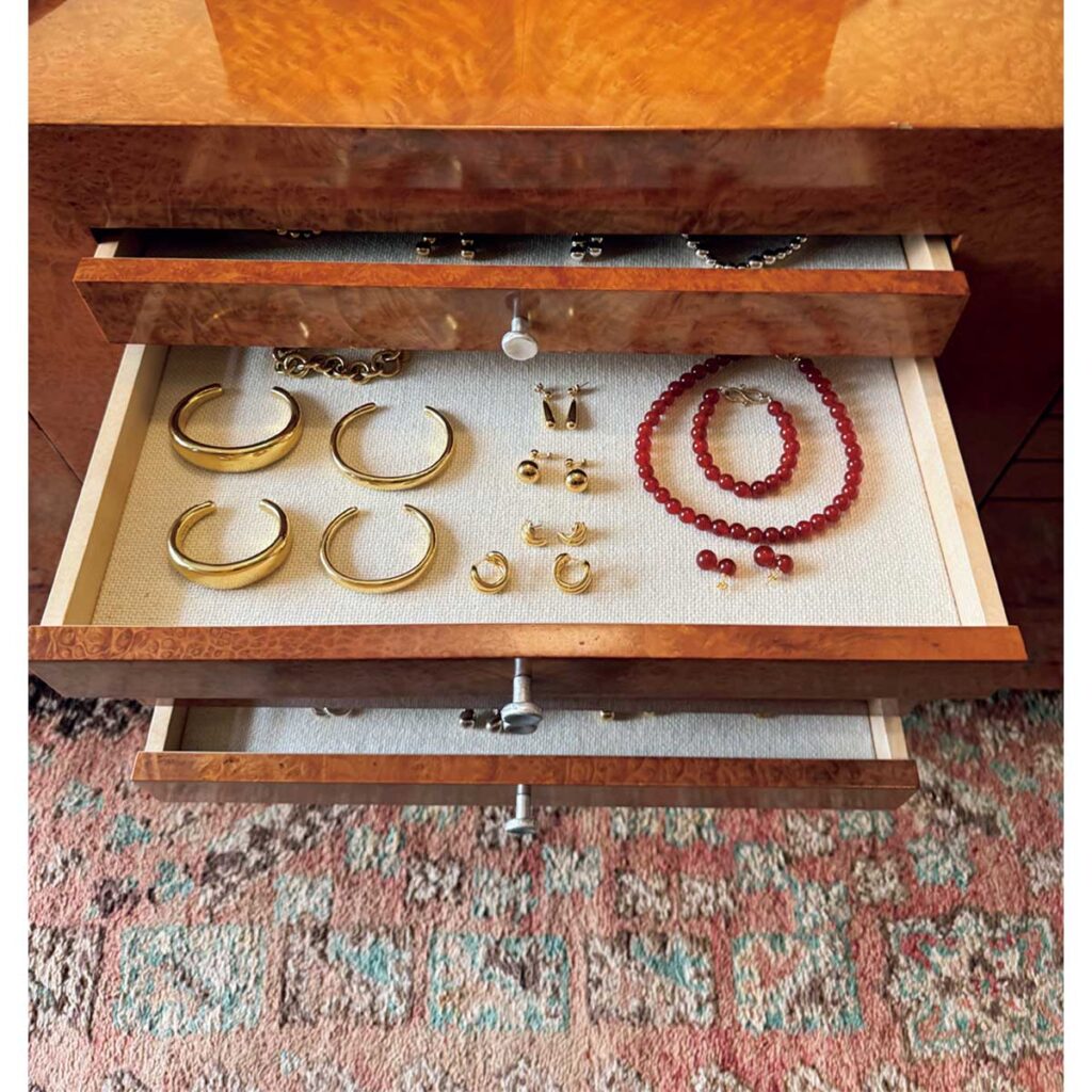 「コンパクトだけど温かい、まるで2人の人柄を表すような雰囲気でとても居心地のいい空間。商品は引出しのなかにラインナップされています。開けるたびにワクワク♡ 同じ通りにはTEKLA、TOTEME、Louis roeと私の好きなお店が並びます」。