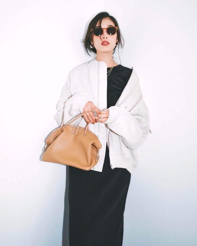 12月9日(火)、定番アウターの MA-1 は、あえての“白”と“オーバーサイズ”で取り入れることで、ぐっときれいめな印象に。インナーは上下ともに黒で統一し、白とのコントラストで洗練されたモード感が引き立ちます。ゆるっとしたシルエットが抜け感をつくり、頑張りすぎない大人のこなれ感に。仕上げにキャメルのバッグやゴールドアクセを添えれば、ほんのり女っぽさが加わって、シンプルながらも華やぎのある冬のモノトーンコーデが完成です。
