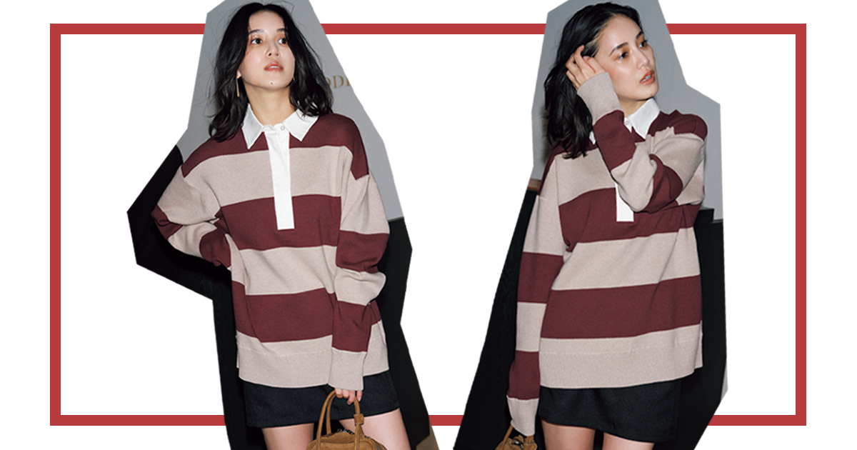 ソックスはボトムスに合わせて調節しやすい、少し長めのものを持っておくと◎。くしゅっと感もこなれて見えます。ボーダーラガーニット¥46,200(BEIGE,)ミニスカート¥24,200(ガジェス)バッグ¥45,100(マージシャーウッド/ユー バイ スピック&スパン ルミネ池袋店)ソックス¥990(靴下屋/タビオ)ローファー¥102,300(トッズ/トッズ・ジャパン)ピアス¥16,060(エムシースタジオ/ZUTTOHOLIC)