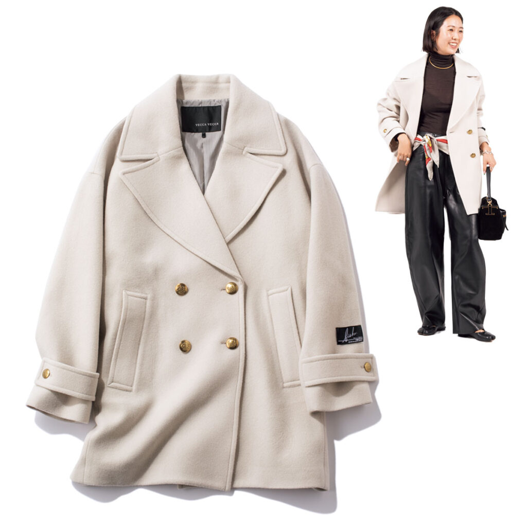 ダウンコート¥148,500(タトラス/タトラス カスタマーセンター)ジャケット¥31,900(アルページュストーリー プレスルーム)タートルニット¥66,000(エストネーション/エストネーション)サテンワイドパンツ¥18,700(ノーリーズ/ノーリーズ 自由が丘店)ピアス¥22,000(ワンエーアールバイウノアエレ/ウノアエレ ジャパン)