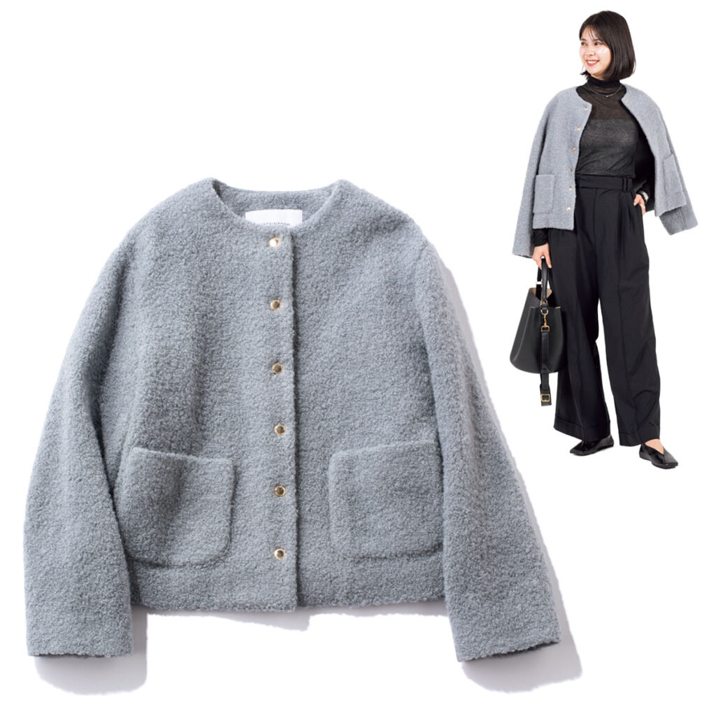 ジャケット¥32,890ビスチェ&ワイドパンツセットアップ¥36,190ニット[ケープとセット価格]¥19,690〈すべてCIS.〉バッグ¥25,190〈マルコ ビアンキーニ〉(すべてスーツスクエア TOKYO GINZA店)ピアス¥26,400(バルブス/ZUTTOHOLIC)パンプス¥38,500(ファビオ ルスコーニ/伊勢丹新宿本店 本館2階 婦人靴)