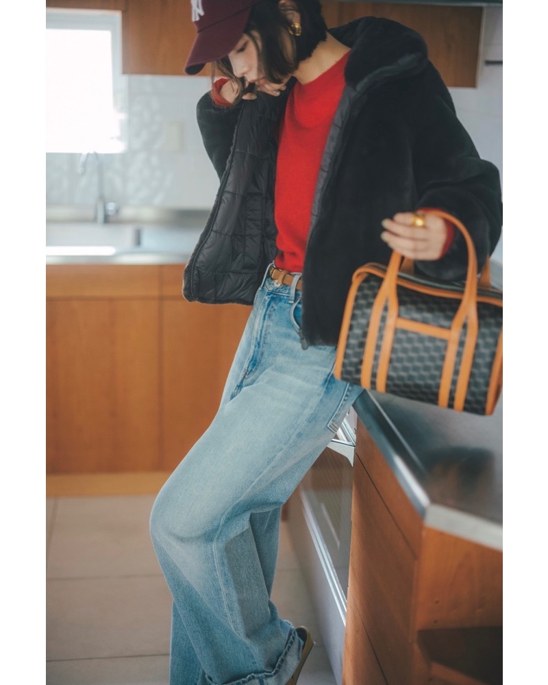 12月20日(土)、カジュアルなデニムをぐっとリッチに見せてくれるのが、毛足長めのボアブルゾン。ふわっと存在感が出るアウターに、顔まわりがパッと明るく見える鮮やかなレッドニットを重ねれば、冬の週末らしい気分の上がる配色に。キャップでカジュアルさをキープしつつ、大ぶりのゴールドアクセやレザーバッグで大人のリッチ感もひとさじ。シンプルだけど印象に残る、余裕のある休日スタイルが完成です。