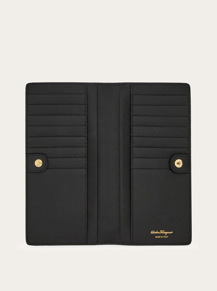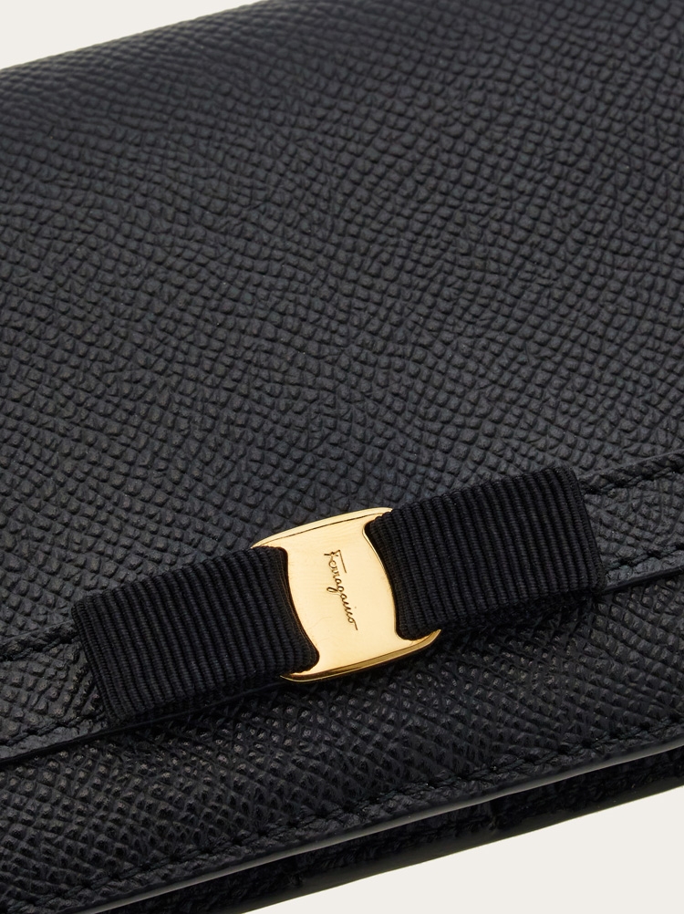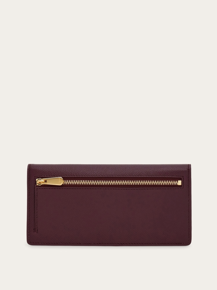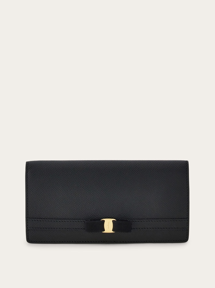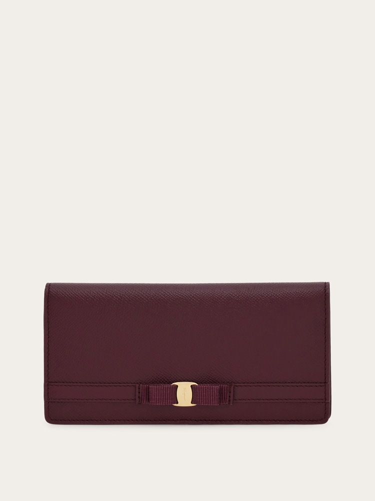 スタイリッシュなフラップシルエットにVARAリボンが映える長財布。落ち着いた色合いの4色展開で、上質なレザーの質感が楽しめます。