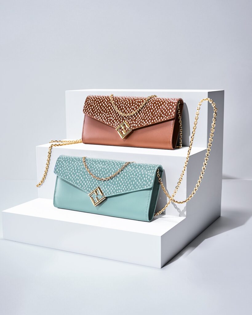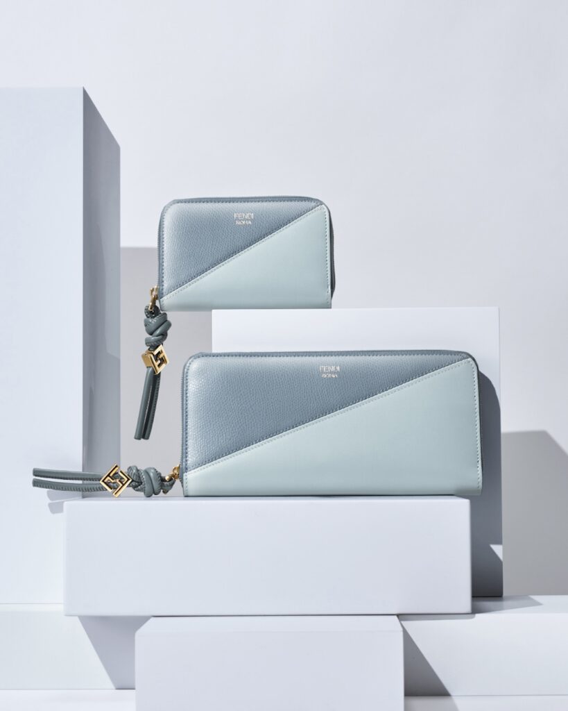 ダイアゴナルに配されたアイコニックな“FF”ロゴのクロージャーが印象的な「FFダイヤモンド(FF DIAMOND)」。2026年春夏 プレコレクションでは、ブルー×ブラウンを中心とした、モダンで洗練されたカラーパレットを採用。ラグジュアリーなカーフレザーとの組み合わせで、春夏らしい抜け感と気品が同時に叶います。ミニマルながら存在感のあるデザインは、財布を持つしぐさまでも美しく見せてくれそう。個性を引き立てつつ、開運日のお守りのように持ち歩きたい逸品です。