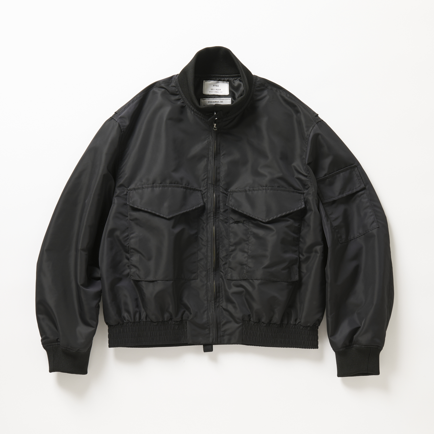 トレンドのブルゾンを1枚持っておくなら、ミリタリーすぎず光沢感のある生地を使用した、どんなスタイルにも合わせやすい黒がおすすめ。身幅や腕周りにボリュームのあるリラックスフィットが嬉しい。ブルゾンジャケット¥71,500(ハイク/ボウルズ)
