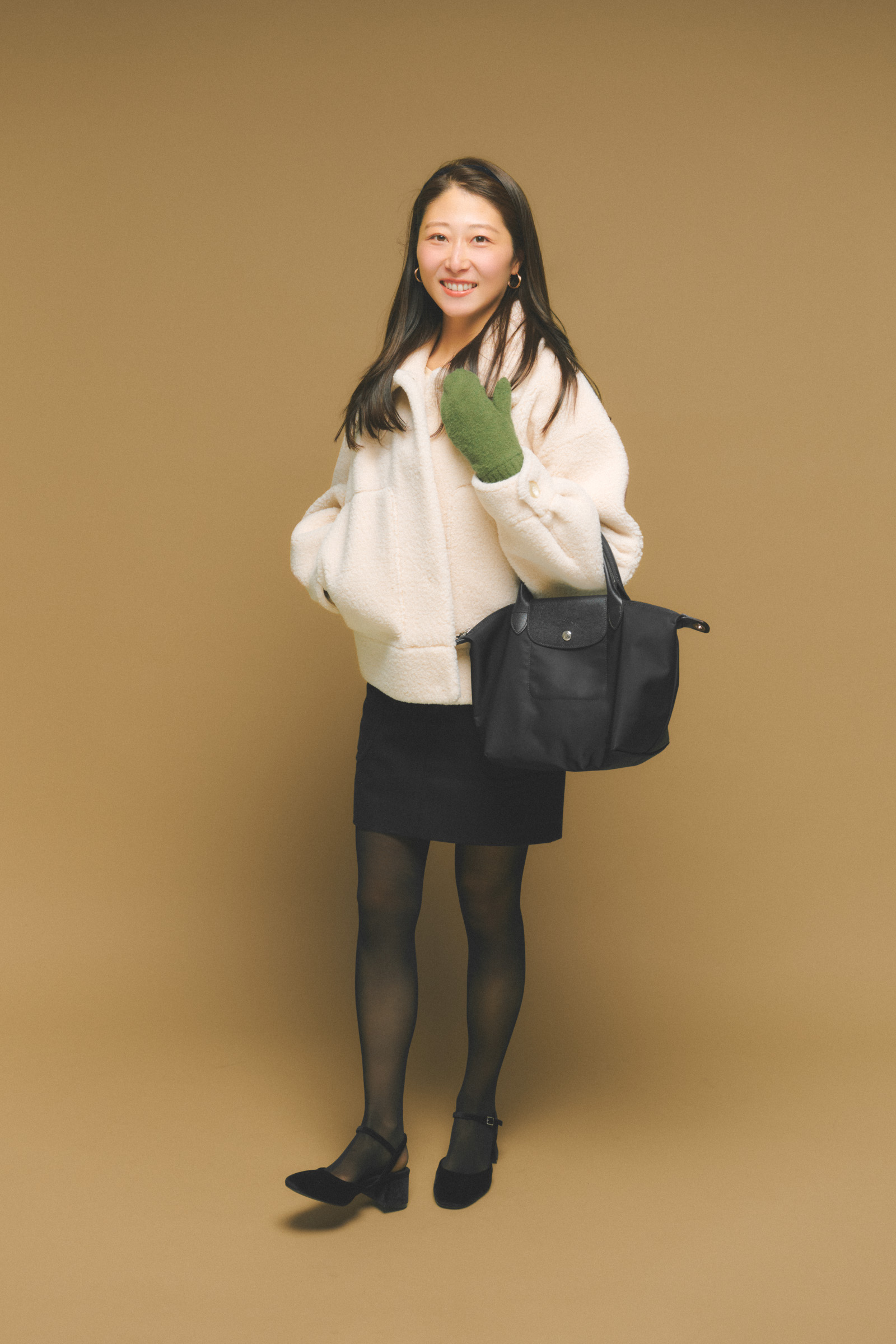 実用性も◎冬のミニ丈通勤はユニクロ手袋が相棒
