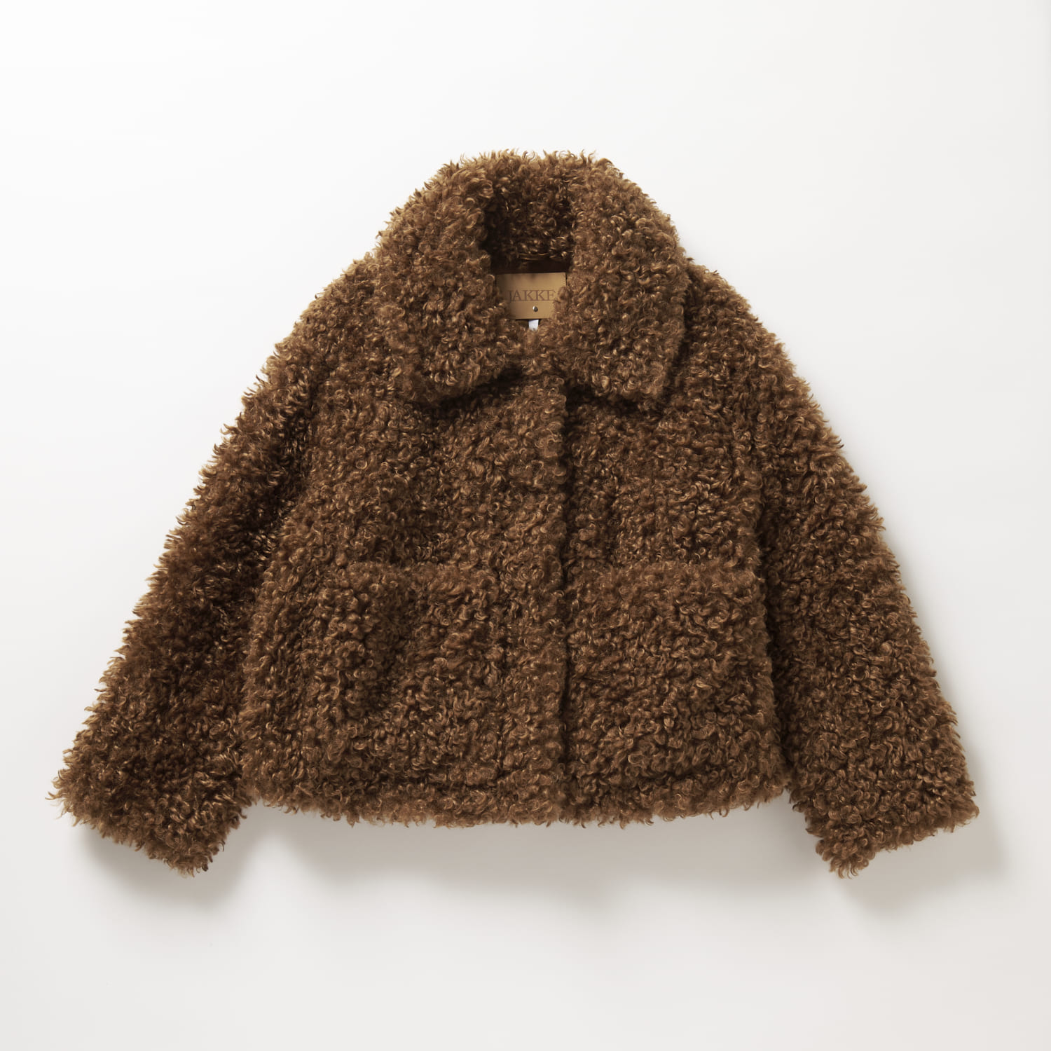 ボリュームのある大胆な衿と軽くてカールしたフェイクファー素材が特徴的。トレンドのふわもこアウターの中でも特に被りにくいデザインで、スタイリングに華やぎをプラスしてくれる1着です。ファージャケット¥53,900(ジャッキー/ジャック・オブ・オール・トレーズ プレスルーム)