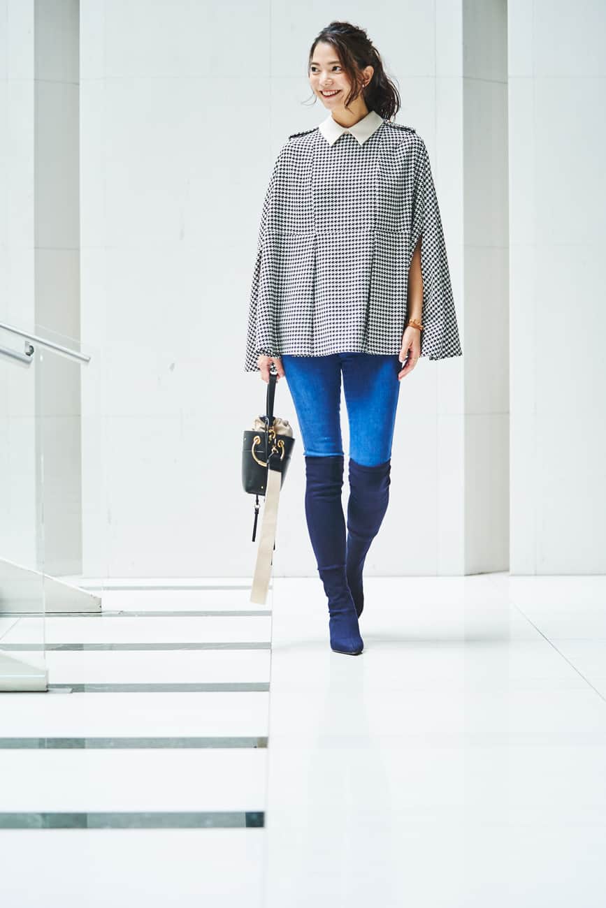 ポンチョ:SEVEN TEN by miho kawahito デニム:Stella McCartney バッグ:Chloe ブーツ:TSURU by Mariko Oikawa