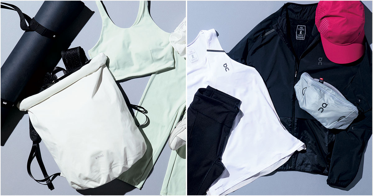 [左から]シューズ¥18,700タイツ¥14,300タンクトップ¥7,700ジャケット¥27,280キャップ¥5,500ウエストバッグ¥6,050(すべてOn/オン・ジャパン)