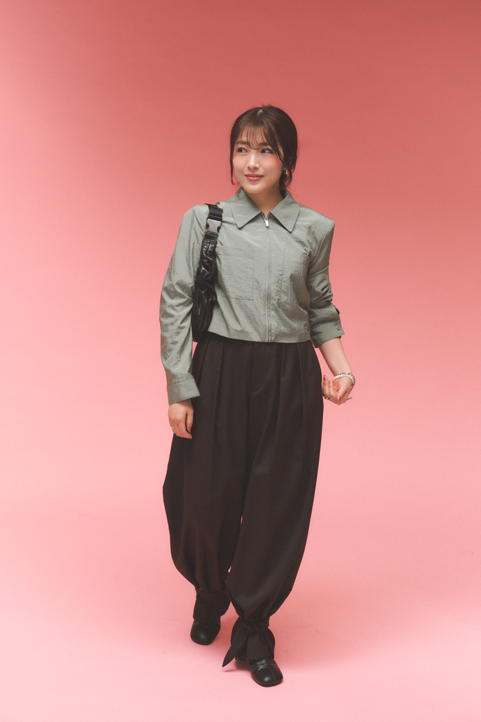 「タイムレスで揺らぐことのないスタイルをコンセプトにした、ソウル発のデザイナーズブランド”ブロッサム”。昨年、初めて東京でポップアップが開催されたので行ってみました。クラシックさと今っぽさのバランスが絶妙で、デイリーにも取り入れやすいところに惹かれました。ミリタリー感のある淡いカーキのブルゾンも、コンパクトなシルエットでカジュアルになりすぎず、キレイめに決まるのが嬉しいポイントです」