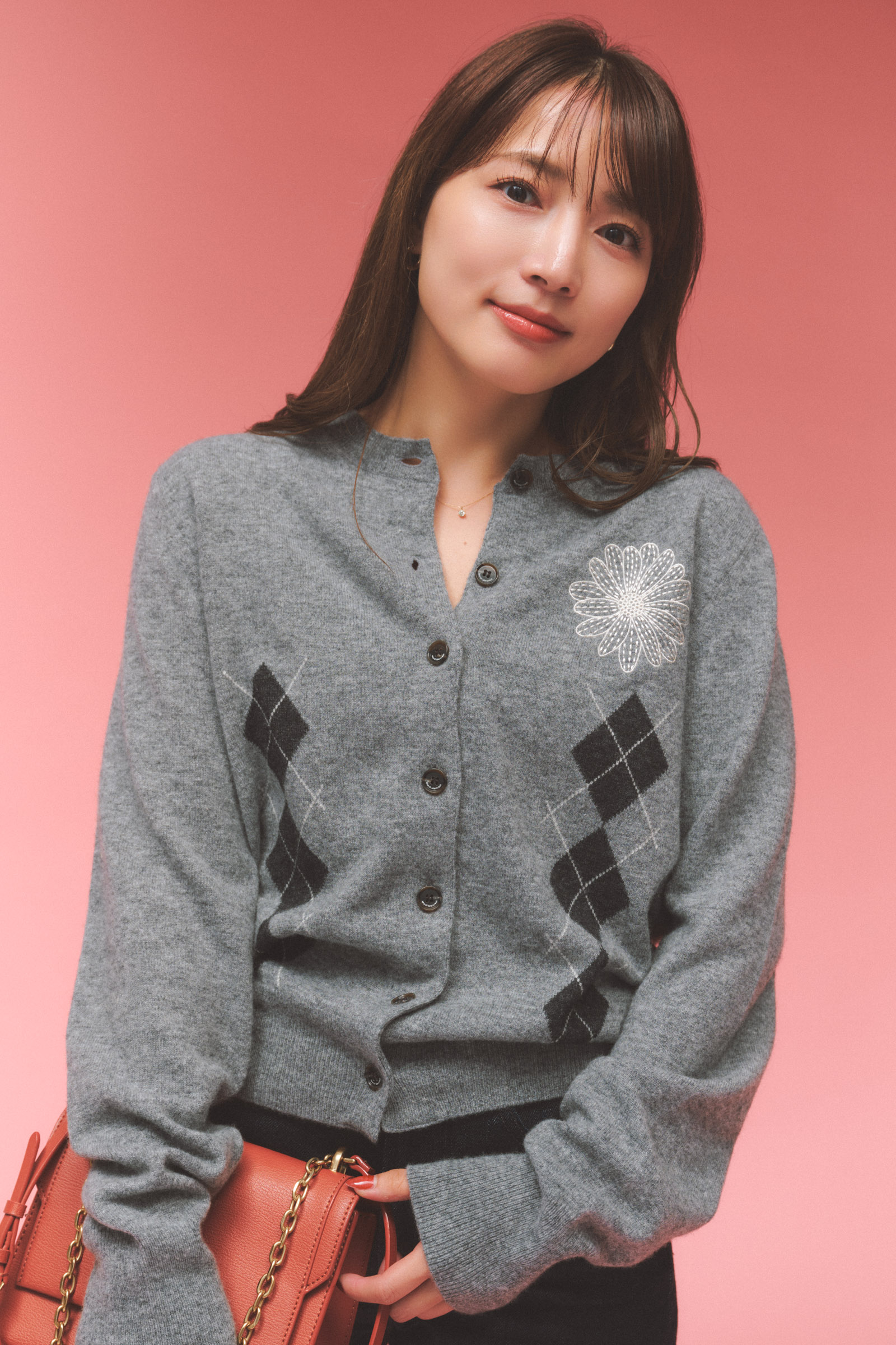 「アーガイル柄が効いた“マルディメクルディ”のニットは、日本のポップアップでゲット。薄手なのにしっかり暖かくて、仕事でも休日でも使いやすいです。カーディガンの前をラフに開けたり、シャツをインしてキレイめにしたり、その日の気分で着こなしを変えられます。胸元のロゴがアクセントになって、着るたびにテンション上がります!」