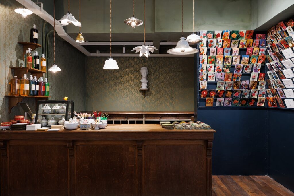 店内には、名高いパフュームキャンドルのフルコレクションや、甘美で魅惑的なノートのお香・パルファン、ジョン・デリアンのアイテム、古書など、多彩なラインナップが集結。