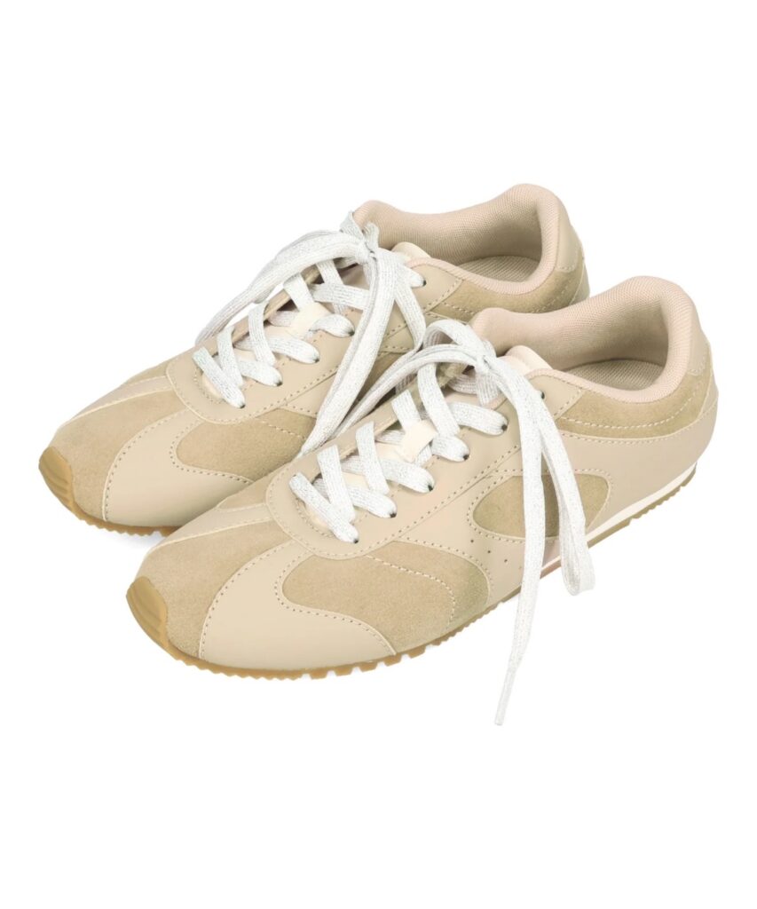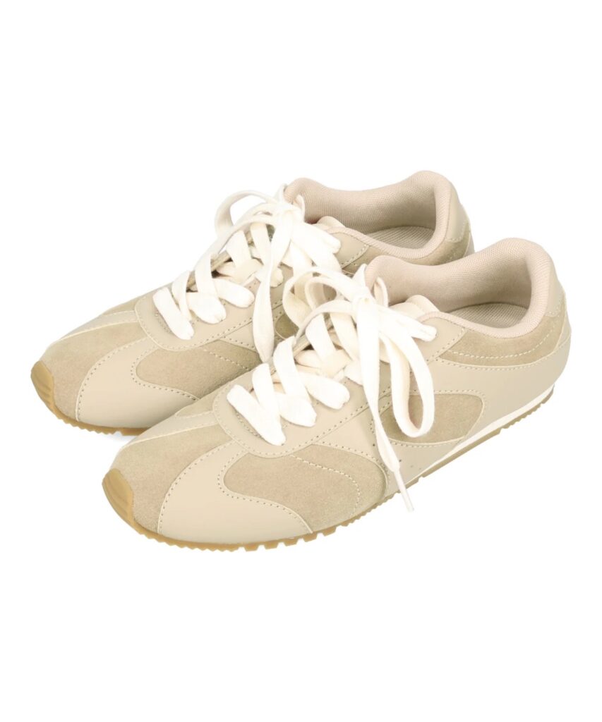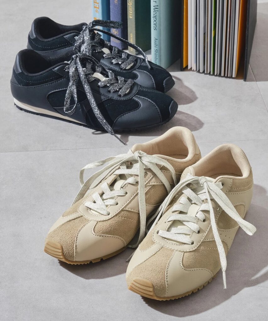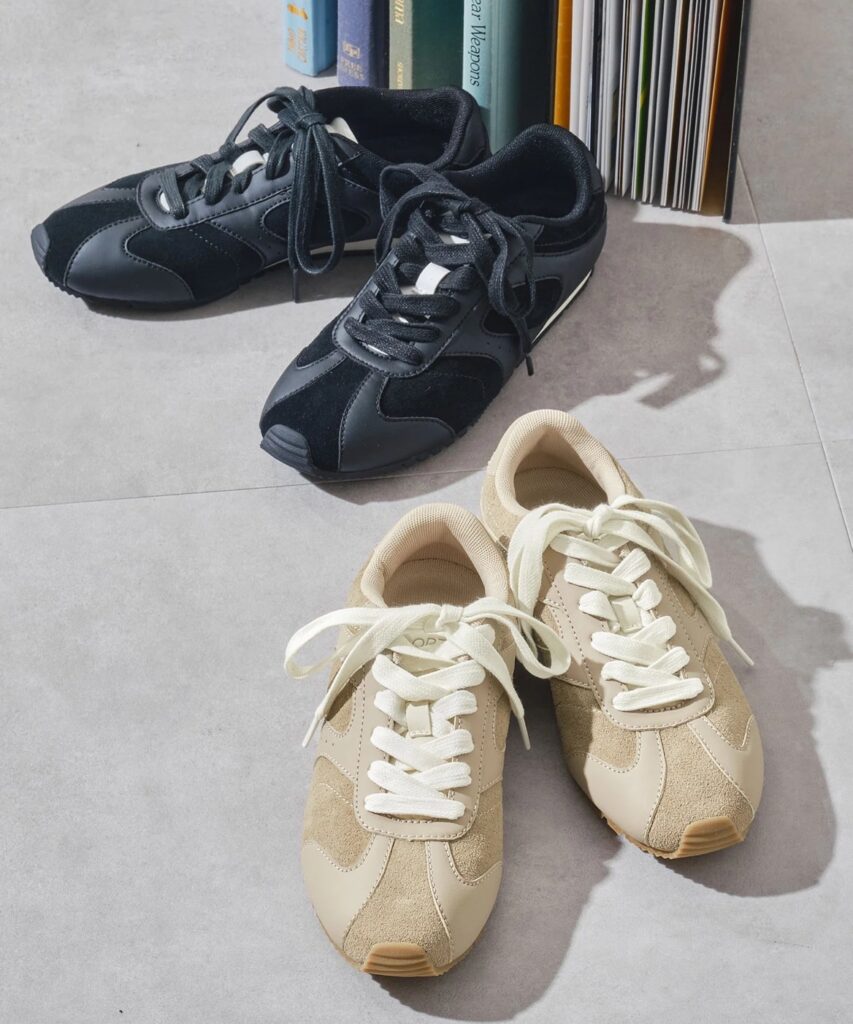 オリエンタルトラフィックから誕生したスポーツライン「ORTR」の注目作。スエードと合成皮革を組み合わせた、上品さと軽快さを兼ね備えたフラットスニーカー。付属のラメ紐に付け替えれば、雰囲気をガラッと変えられる2way仕様が魅力です。軽い履き心地で、旅行やイベントにも活躍します。気負わず履けて、さりげなく洒落感を添えてくれる一足。2wayフラット切替スニーカー ¥7,700(ORTR/株式会社ダブルエー)