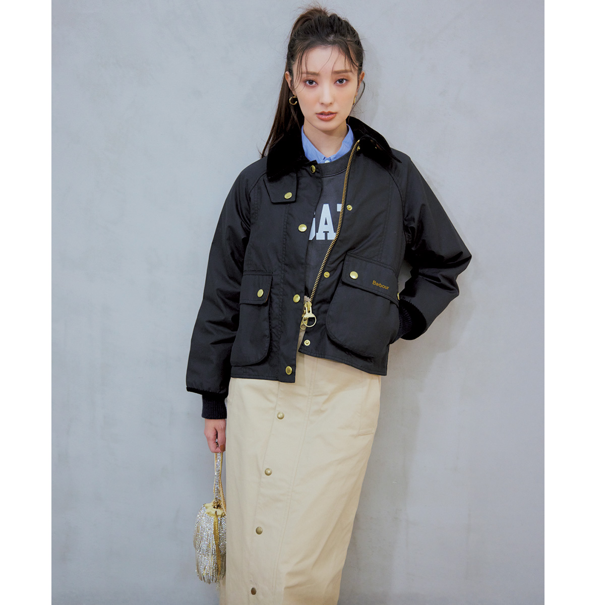 シャツ×スカートにハンサムジャケットで変化球を投入