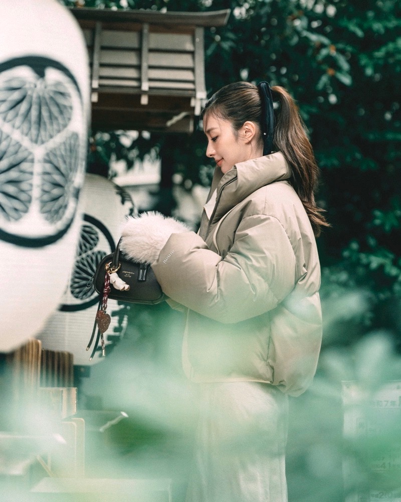 ダウンジャケット¥31,900(emmi/エミ ニュウマン新宿店)プルオーバー¥22,000(コンテ/コンテ 青山店)カットソー¥10,450(エリオポール/エリオポール代官山)スカート¥28,600(グレーコード/ゲストリスト)バッグ¥33,000(クリスチャン ヴィラ/ハーモニープロダクツ オンラインストア)バッグチャーム¥9,900〈VIAMAILBAG〉靴¥35,200〈デイト〉(ともにティースクエア プレスルーム)靴下¥1,375(靴下屋/タビオ)手袋¥22,000※参考価格(アルポ/アマン)ヘアリボン/ヘアメーク私物