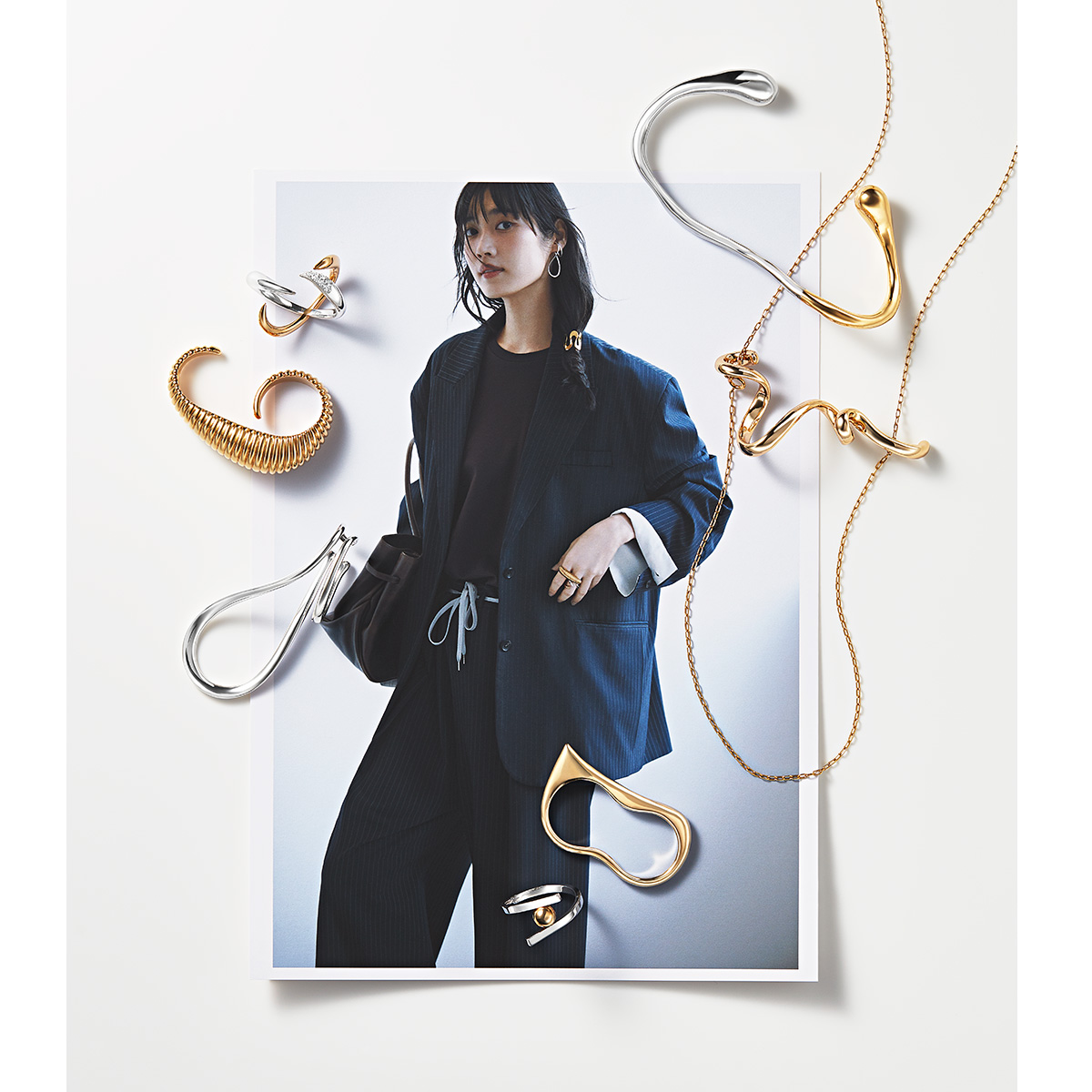 初めて会う人に残る印象の決め手になるのは、実はジュエリーかもしれません。服と響き合いながら、その人の輪郭を鮮明にするジュエリーは印象を象り、自分らしさを育てていくパートナー。今回は、大ぶりフォルムが仕事服に映える「地金ジュエリー」7選をご紹介します!