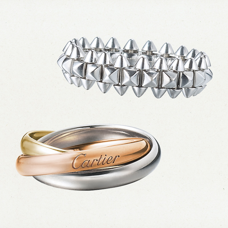 不規則なリズムを生むWフィンガーリングで高感度な手元に。Wリング¥38,500(リューク)