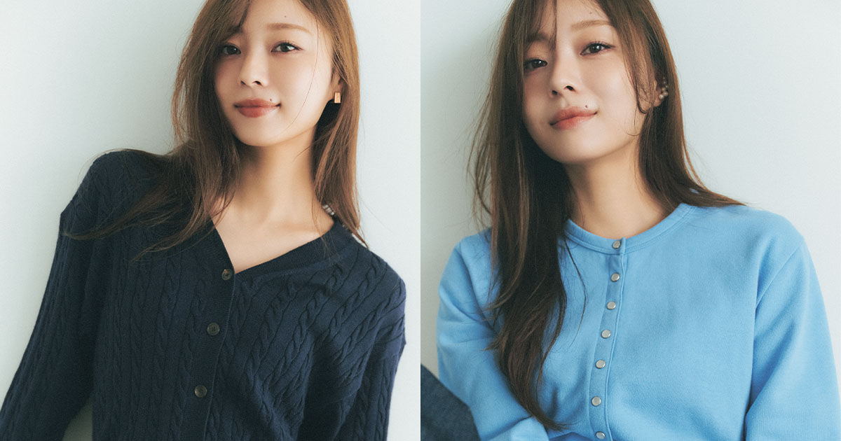 上品なネイビー×Vネックでほっこり見えを回避。コンパクトな短丈だから、トップスとしても羽織としても使いやすい。カーディガン¥31,900(カレンソロジー/カレンソロジー 新宿)スカート¥44,000(ソブ/フィルム)ピアス¥30,800ブレスレット¥99,000(ともにブランイリス/ブランイリス トーキョー)