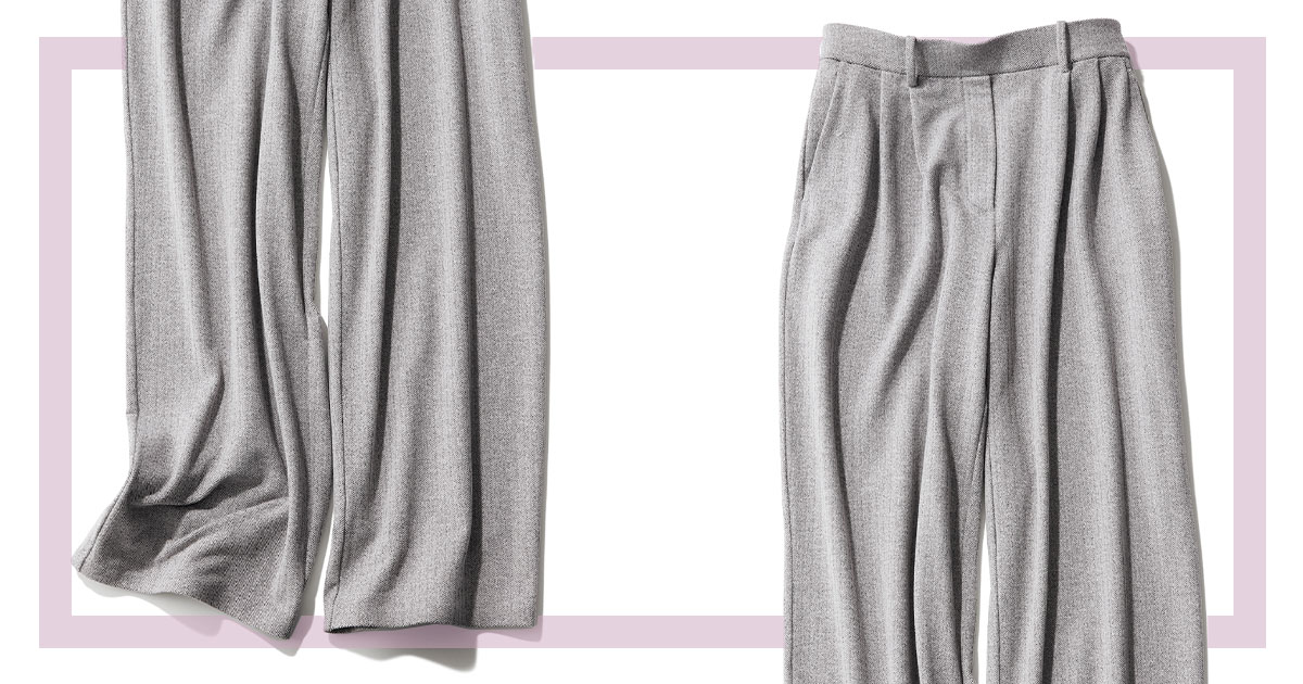イージーな着用感ながら、織地のようなメランジ調のグレーで見た目はリッチに。お仕事シーンでも引け目なく。トラウザー¥20,800(ルルレモン╱ルルレモン お客様窓口)カーディガン¥28,600(ルル・ウィルビー╱アルアバイル)バッグ¥42,900(TOV╱アンソロジー)ベルト¥17,600(エブール╱リトルリーグ インク)靴¥35,200(ファビオ ルスコーニ╱伊勢丹新宿本店 本館2階 婦人靴)