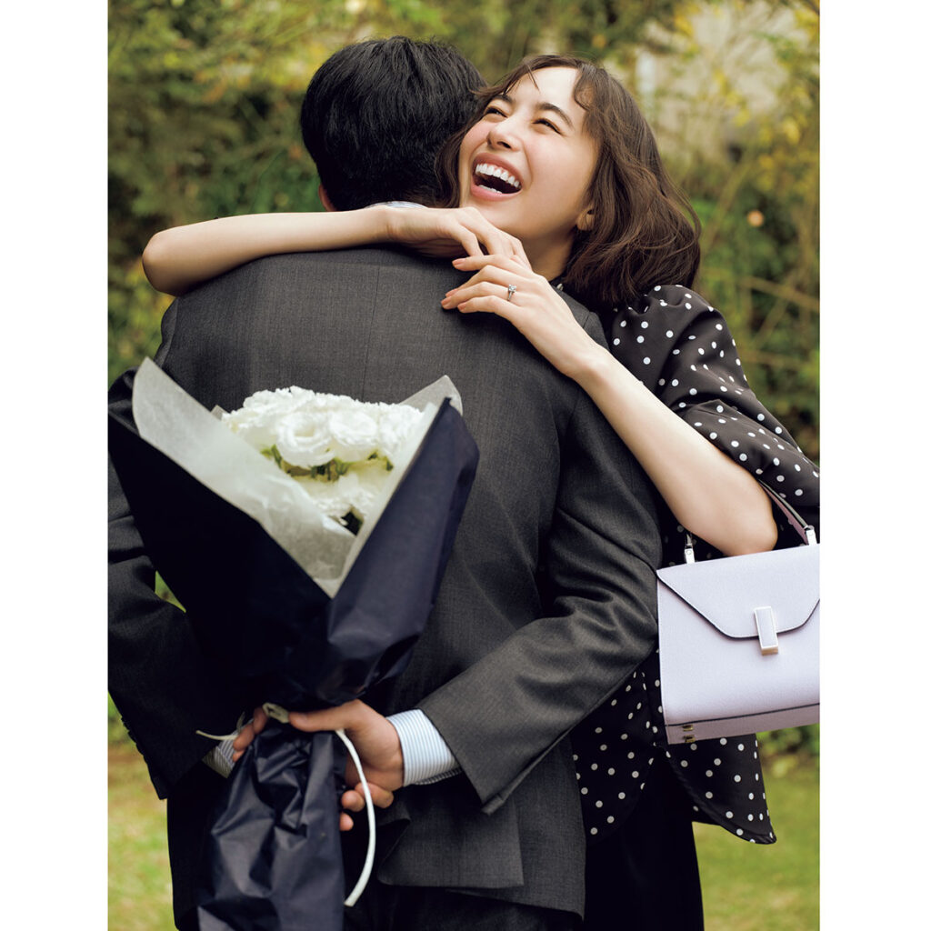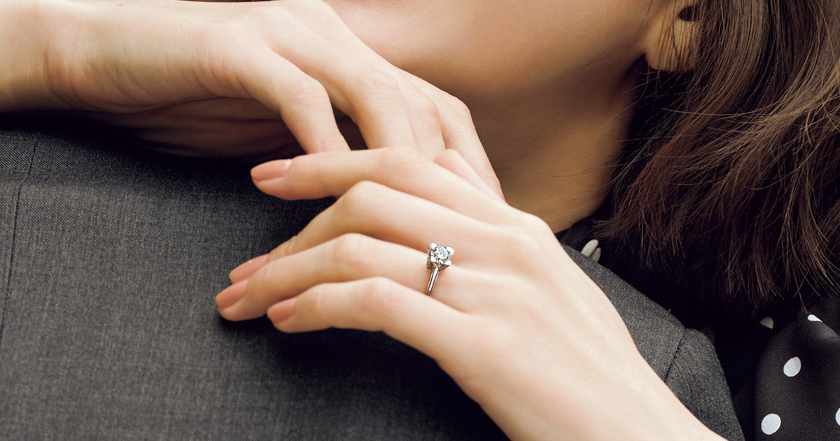 「キング・オブ・ダイヤモンド」の称号にふさわしく、最高峰のダイヤモンドを熟練の職人技でセッティングしたソリテールリングは、これ以上ない“愛の約束”そのもの。リング「HWマイクロパヴェ・リング」[PT×D センター1ct~]¥3,927,000~(ハリー・ウィンストン/ハリー・ウィンストン クライアントインフォメーション)ブラウス¥33,000(アロー)パンツ¥74,800(カオス/カオス丸の内)バッグ¥594,000(ヴァレクストラ/ヴァレクストラ ジャパン)【MENS】スーツ¥94,600〈シップス〉シャツ¥40,700〈エリコフォルミコラ〉(すべてシップス インフォメーションセンター)