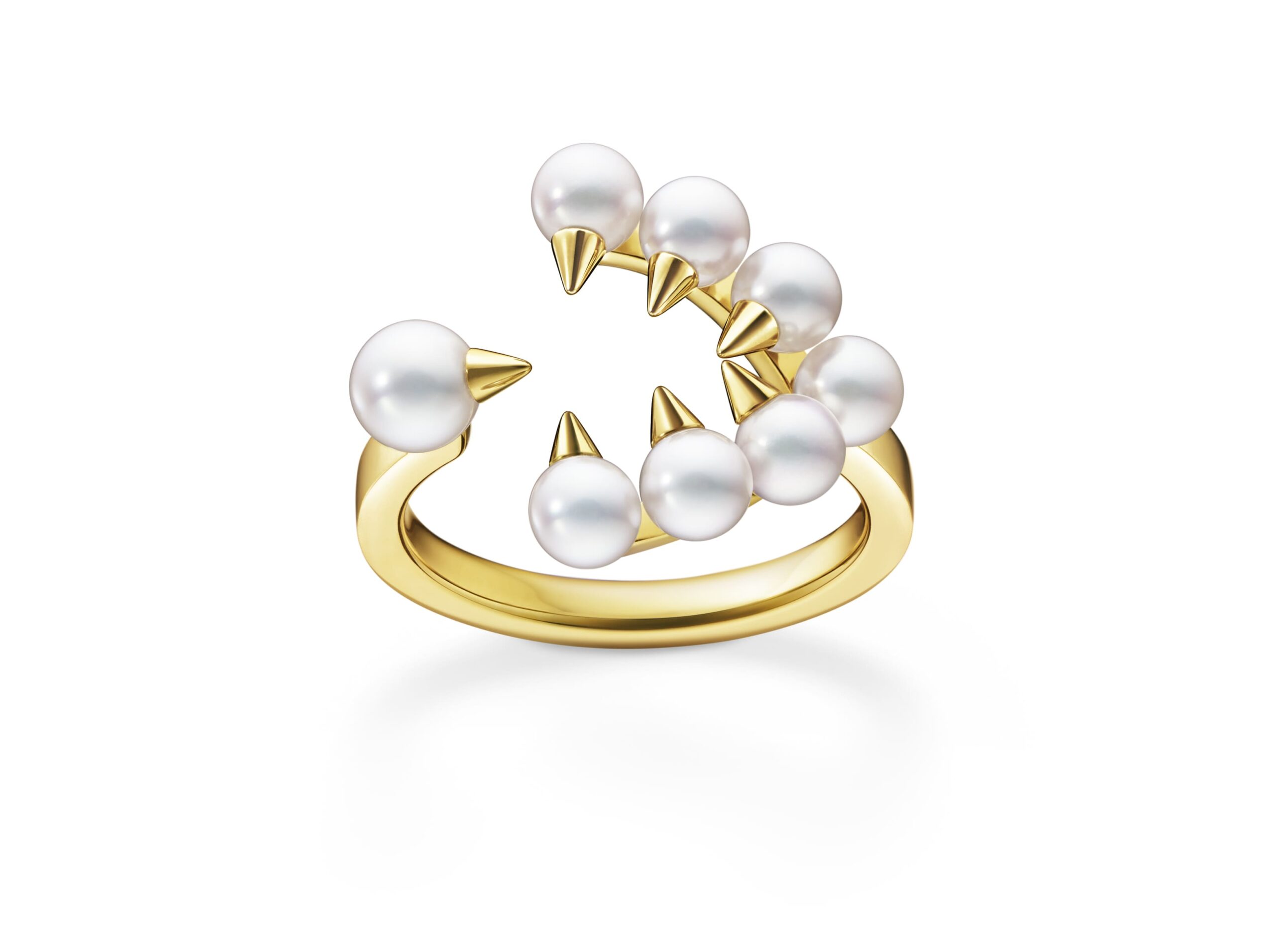 食虫植物からインスパイアされた独創的なフォルムが特徴。骨格ナチュラルが得意とする、アバンギャルドなフォルムと芸術性を兼ね備えています。パールをあしらった唯一無二のデザインで、手元をエレガントでミステリアスな雰囲気に。「デインジャー」トラップリング〈YG×あこや真珠〉¥437,800(TASAKI)