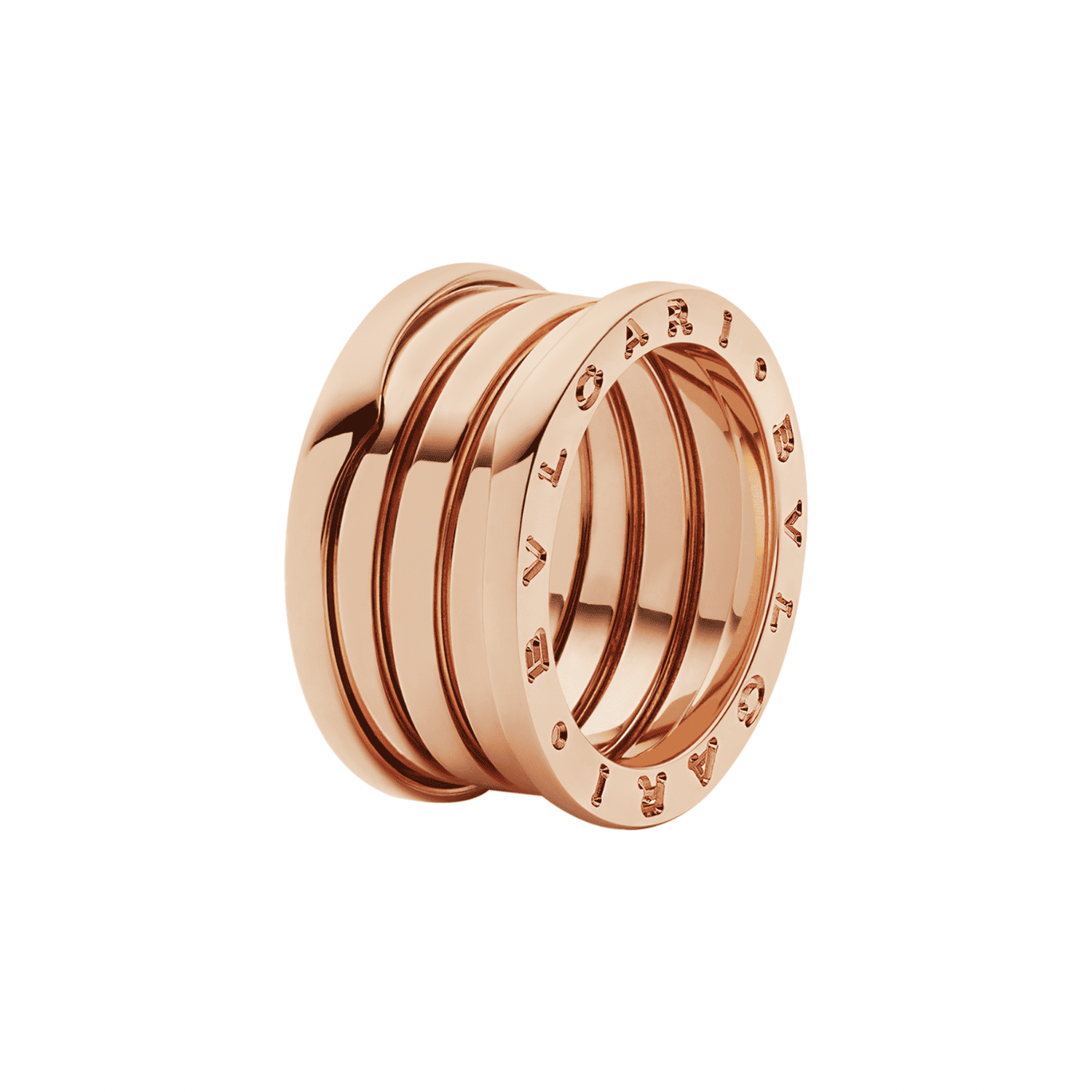 4バンドモデルは、骨格ナチュラルのためにあるようなワイドさ。ローマの遺跡・コロッセオからインスピレーションを得たデザインで手元を印象的に。骨格に負けない、堂々としたフォルムが魅力。ブルガリ「ビー・ゼロワン」リング〈PG〉¥497,200(ブルガリ/ブルガリ・ジャパン)
