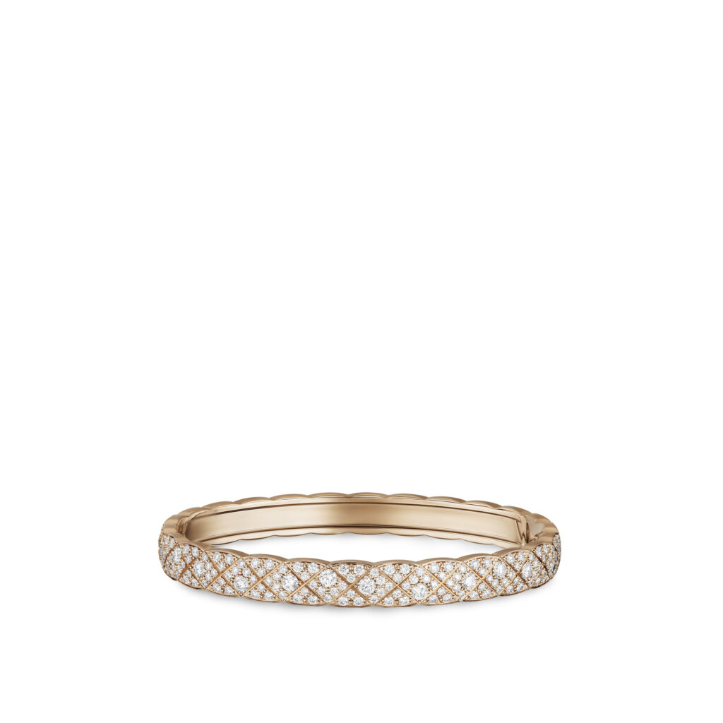 ガブリエル・シャネルが愛したキルティングモチーフを、プレシャスなゴールドで再解釈した「ココ クラッシュ」。丸みを帯びた曲線と、精緻に刻まれたラインが織りなすグラフィカルな造形は、2015年の誕生以来、シャネル ファイン ジュエリーを象徴する存在です。