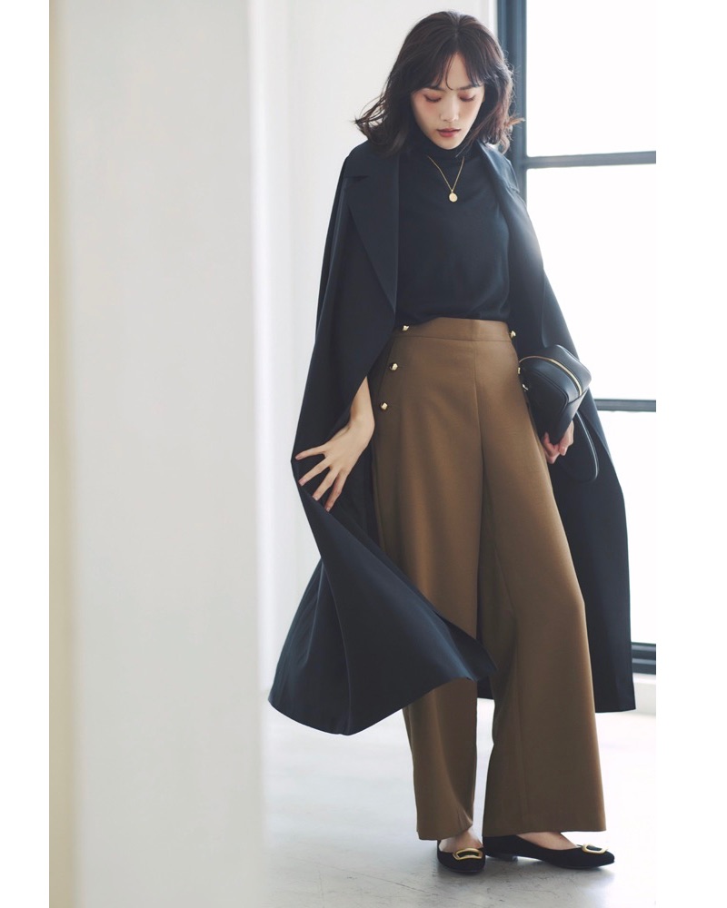 マリンパンツ¥29,700バッグ¥41,800(ともにアルアバイル)コート¥31,900タートルニット¥11,000(ともにN.O.R.C/ノーク)ネックレス¥11,000(チビ・ジュエルズ/チビジュエルズ・ジャパン)パンプス¥38,500(ファビオ ルスコーニ/伊勢丹新宿本店 本館2階 婦人靴)