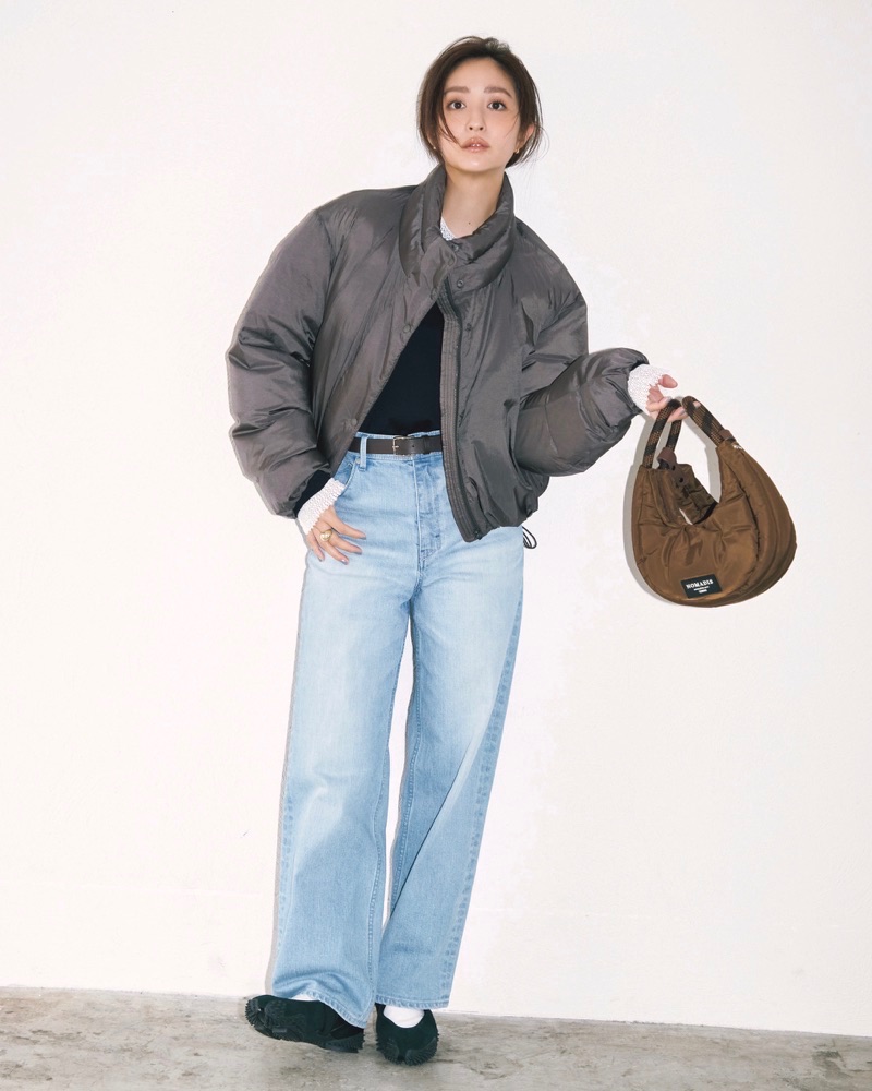 1月25日(日)、実は無印のショートダウンが超優秀って知ってた?ステッチレスでシャープな印象なのに、ショート丈×丸みシルエットで今っぽさも満点。カジュアルなデニム合わせも、このダウンならほっこりせずスタイリッシュな大人カジュアルに着地します。トレンドのブラウンカラーで小物もまとめれば、ぐっと洗練された休日コーデが完成です。