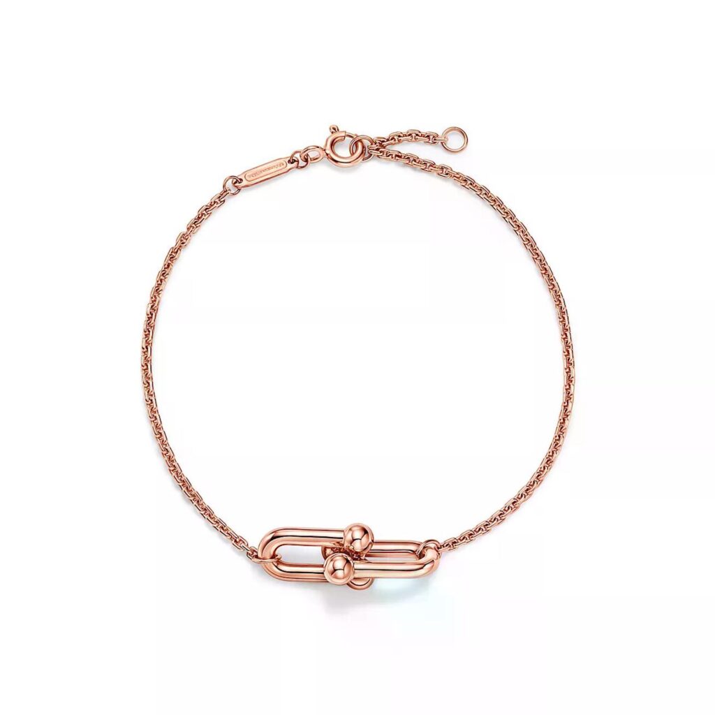 「ティファニー ハードウェア」コレクションを象徴する、リンクが印象的なブレスレット。インパクトがありながら、温かみのあるローズゴールドの柔らかな輝きが加わることにより、素肌に心地よくフィット。カジュアルからエレガントまで、どんなスタイルにも合い、デイリー使いにもぴったりです。