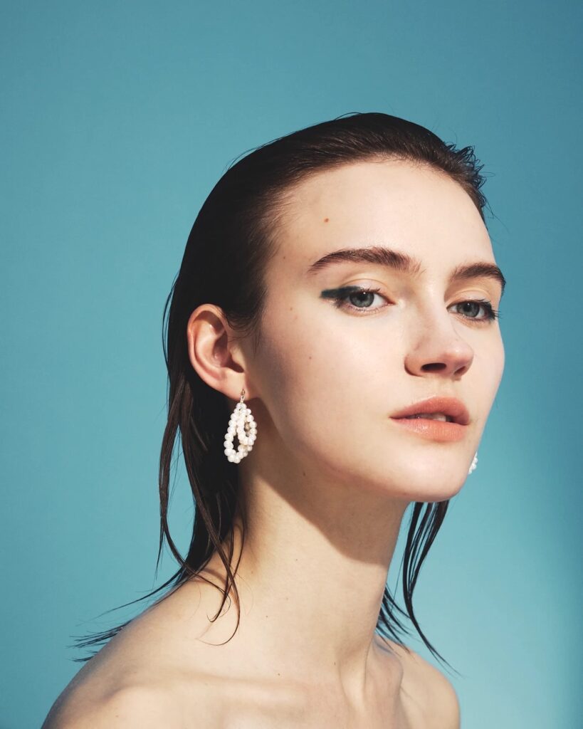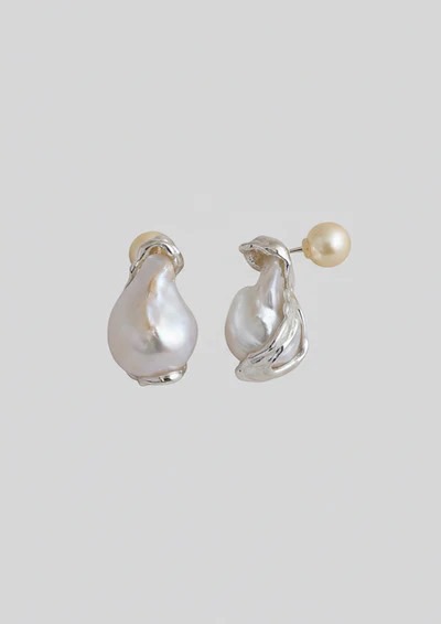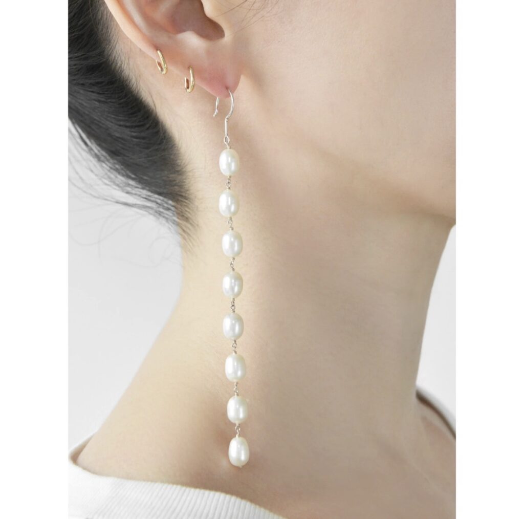 躍動的なシルエットで、個性を添えるパールピアス。白く小さな淡水パールは、清らかでエレガントな雰囲気。淡いカラーのアイテムやふんわりとした風合いのニットとも好相性。だんだんと暖かくなってくるこれからのシーズンのお呼ばれにもぴったり。