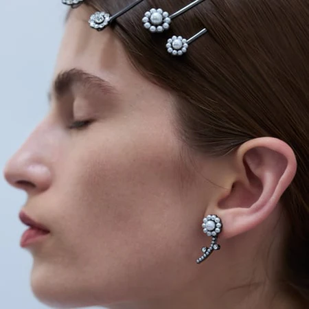 ジャスミンの花からインスピレーションを得たイヤリング。柔和でしなやかなフォルムをメタリックのひんやりとした質感で表現し、モードで辛口な表情に。お呼ばれの定番、黒コーデのアクセントにもぴったりです。ゴールドならより華やか、シルバーならよりクールな印象に。