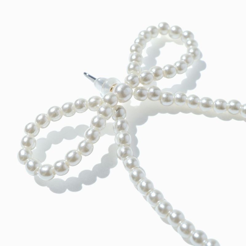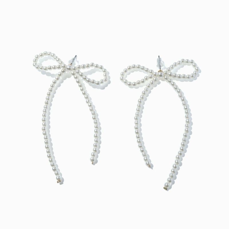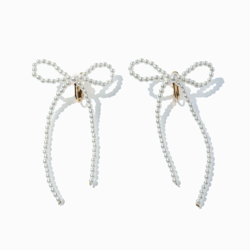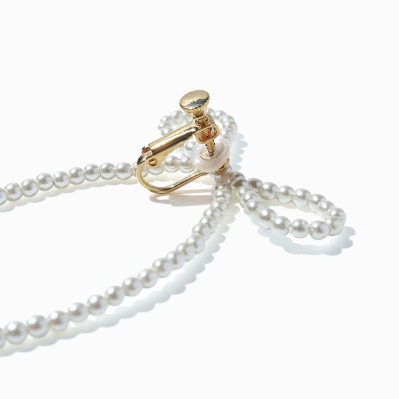 サイズ:全長約7.5cm、 パールサイズ約2.5mm 展開:ピアス・イヤリング パールリボンピアス/イヤリング ¥11,000(STELLAR HOLLYWOOD/株式会社エスモードアート)