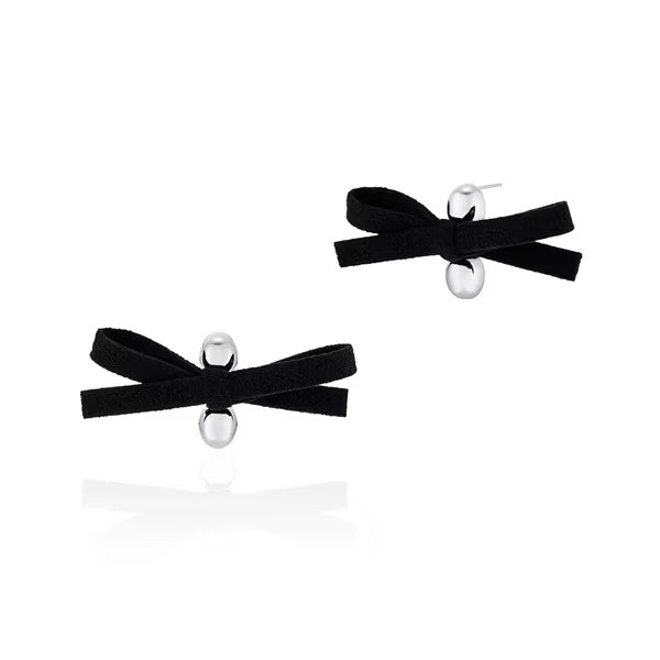 ふっくらボリューム感のあるピアスにスエード素材のリボンを合わせた甘辛MIXなデザイン。かわいさとクールさのバランスが魅力で、鮮度のある耳元を演出します。耳掛けヘアアレンジやアップヘアに合わせて横顔を彩って。