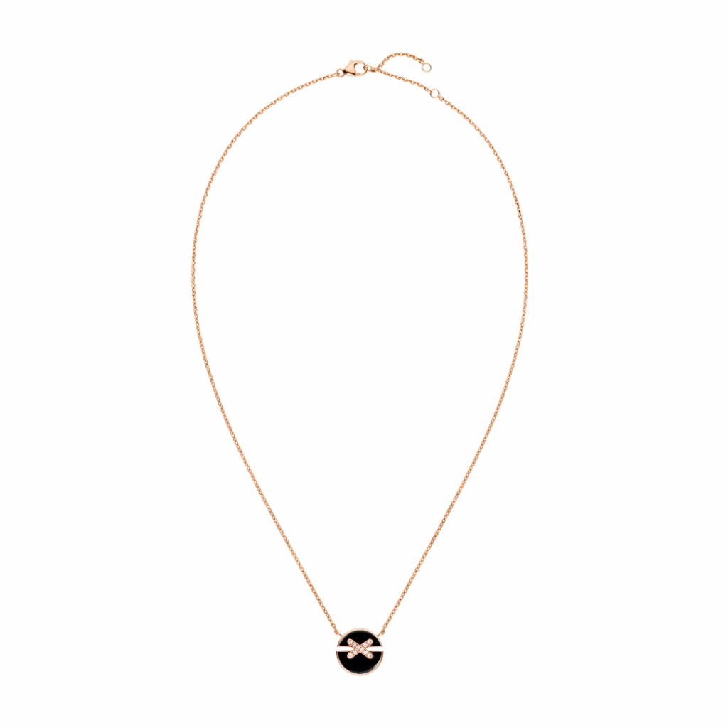 人と人とを結びつける、決して途切れることのない繋がりや、揺るぎない愛を表現した「リアン(フランス語で“絆”)」。こちらはオニキスに、ダイヤモンドがセットされたピンクゴールドの「リアン」モチーフが美しく映えるペンダント。コレクションに込められた想いを胸に、タリスマンとして身に着けるのもおすすめです。