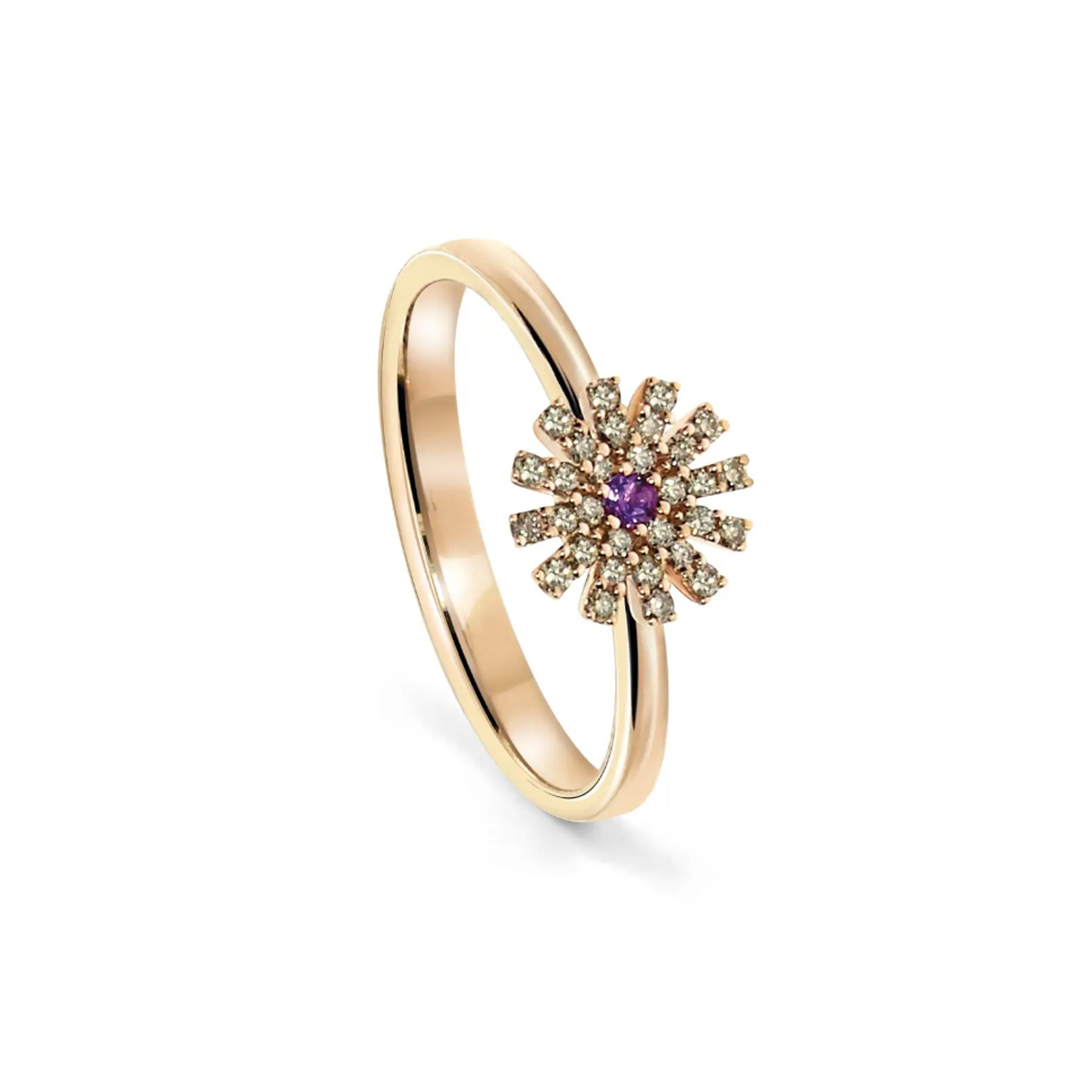イタリア王妃マルゲリータ・ディ・サヴォイア妃のために、創業者であるエンリコ・グラッシ・ダミアーニ自らがデザインしたジュエリーが、インスピレーション源のコレクション。愛の象徴として知られるフラワーモチーフの中央には、神秘的なアメシストを、花びらにはダイヤモンドをセットした、キラキラと輝くロマンチックなリングです。