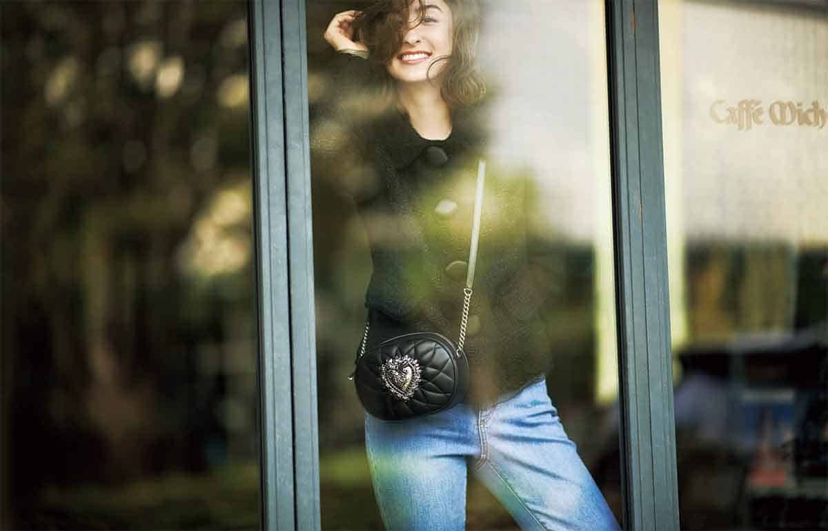 可愛くて華やかな雰囲気を持ちつつ、デイリーに使えると大人気のカメラバッグ。キルティングとハートのバックルのコンビがよく似合う。 バッグ「ディヴォーション カメラバッグ」〈H13×W18.5×D5cm〉¥138,000ジャケット[予定価格]¥360,000デニムパンツ[予定価格]¥74,000(すべてドルチェ&ガッバーナ/ドルチェ&ガッバーナ ジャパン)
