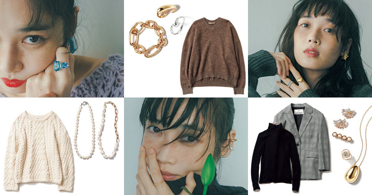 ※CLASSY.2026年2月号『甘辛で考えるジュエリーとニットの「いい関係」』より。