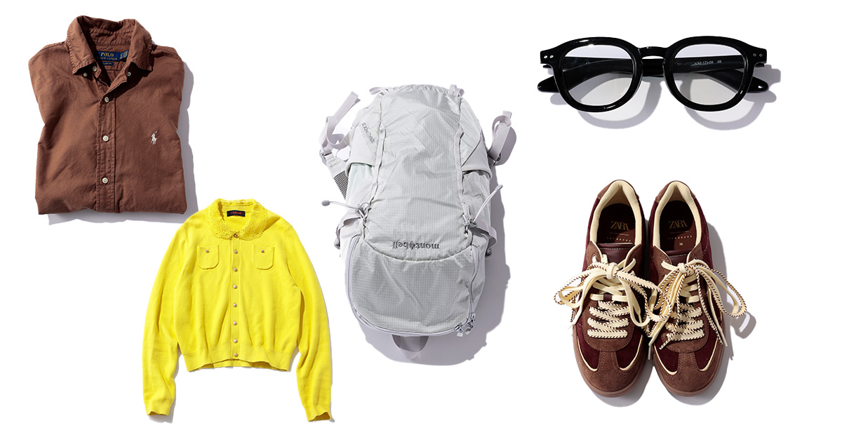 子ども2人分の荷物もあるので、自分の旅支度は常に少数精鋭。軽井沢1泊ならバックパックで完結させます。ハンズフリーかつフッ軽でいられるのも便利。かさばる服は着ていくことで軽量化。パンツは着回してトップスだけ替えるスタイルが定番です。単品でも使えてレイヤードも叶う合理的な服を厳選して、とにかく無駄なく。そのぶん、キレイめな靴&バッグは必ず持参。由緒あるホテルやレストランには小物できちんと感を高めます。