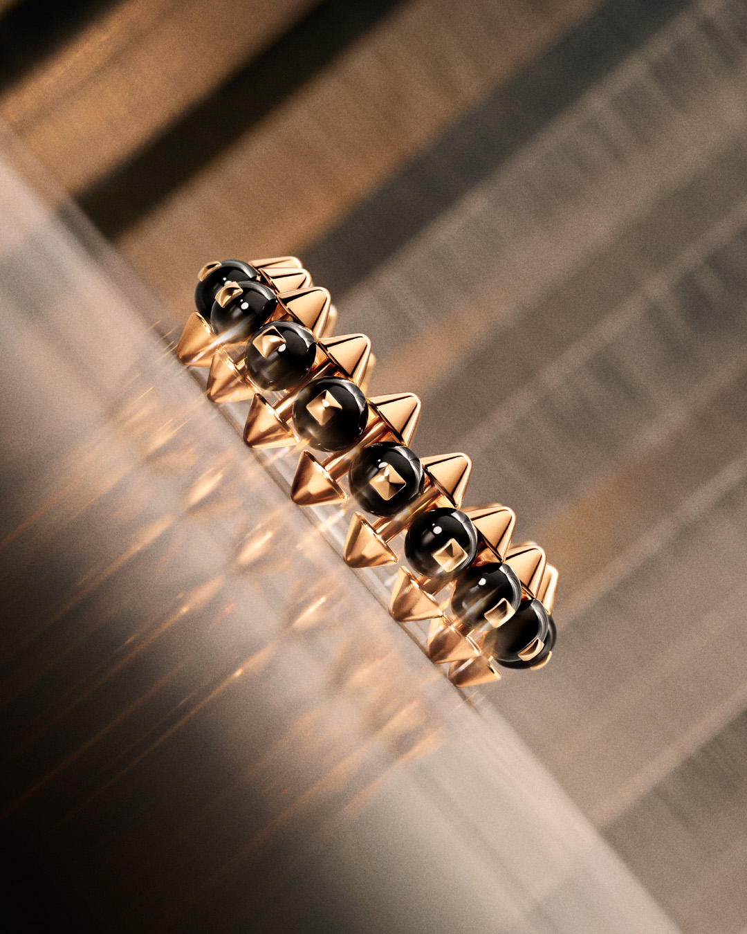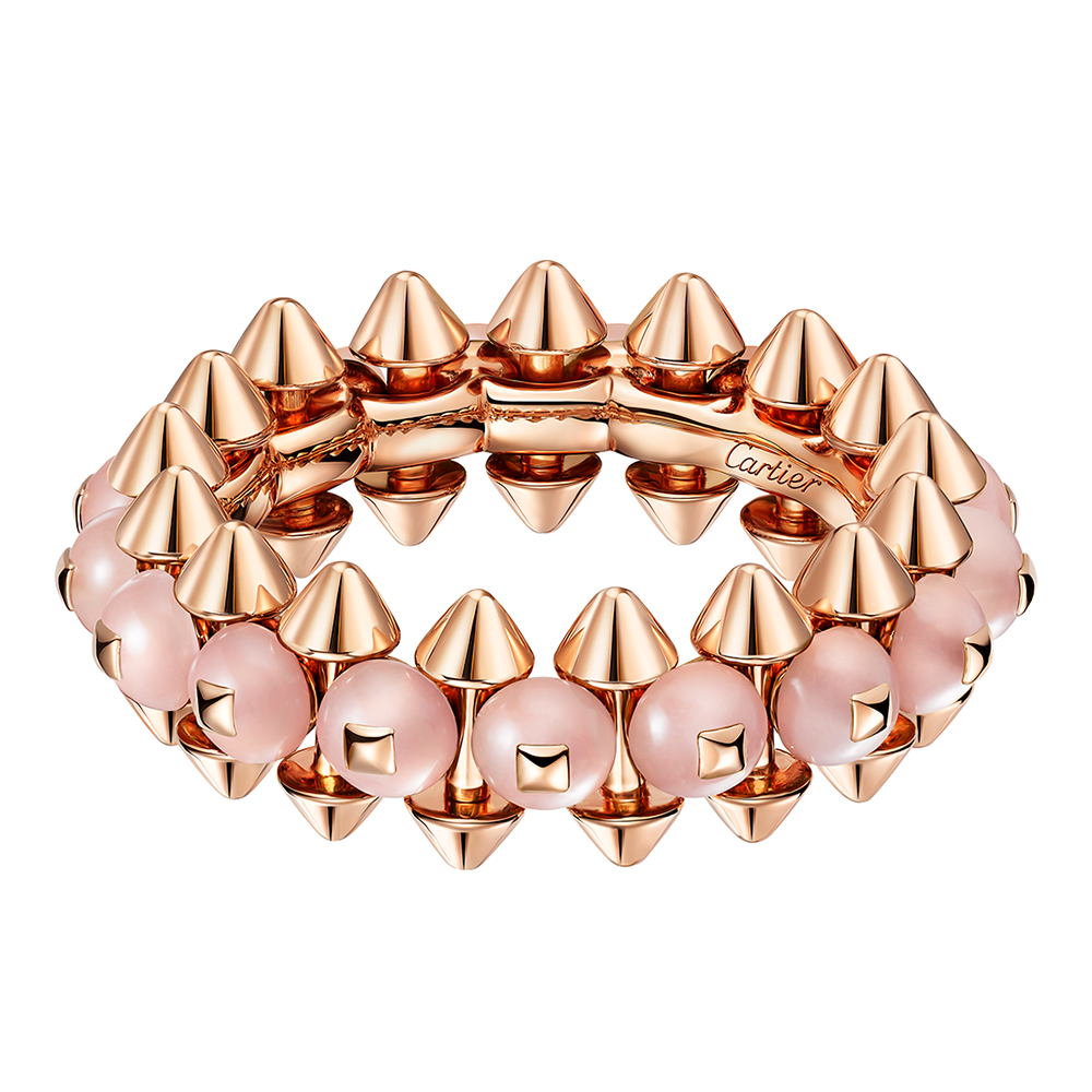 スタッズ、ビーズ、スクエアスタッズ…カルティエを象徴する3つのモチーフを大胆に融合させた「クラッシュ ドゥ カルティエ」。幾何学的で構築的なデザインでありながら、身につけると驚くほどしなやか。ジュエリーの「プレシャス」と、どこかインダストリアルな「メカニカル」という相反する要素が共存する、カルティエならではのクリエイションです。