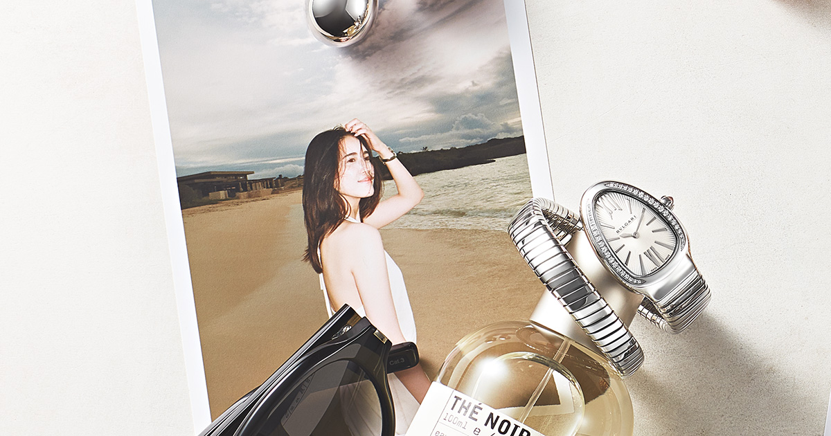 滞在先がローズウッド宮古島だったので、ホテル目の前のビーチや客室のプールなど、基本ホテル中心でのんびり。ビーチリゾートにもジュエリーは欠かせません。白ワンピを軸に選んだのは、馴染みのいいホワイト系のピアスとジュエリーウォッチ。長期旅行の場合はお気に入りのジュエリーを詰め込みますが、ショートトリップなら行き先を意識して厳選。ブルガリのセルペンティ トゥボガス ウォッチは、自分の中で、宮古島の大自然とヘビモチーフがリンクしてピックアップ。
